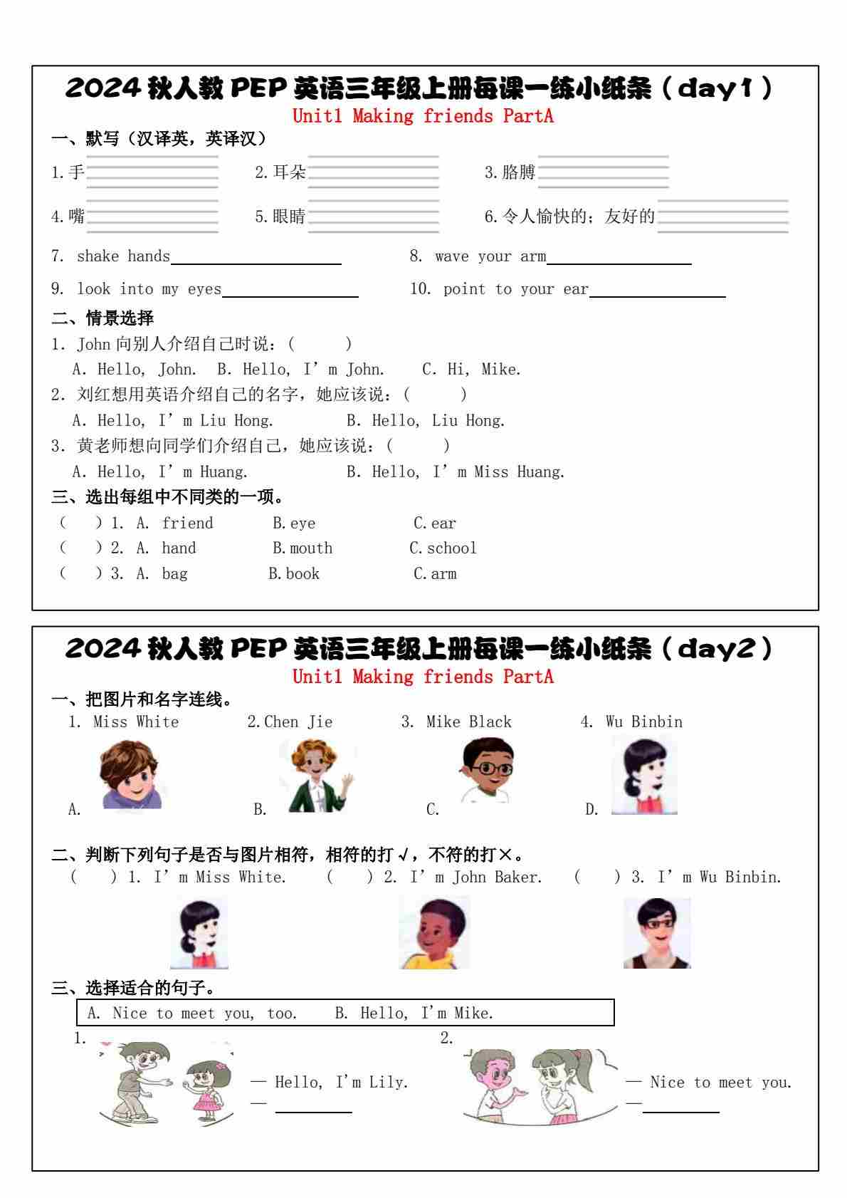人教PEP英语三年级上册每课一练小纸条(34天)(1)