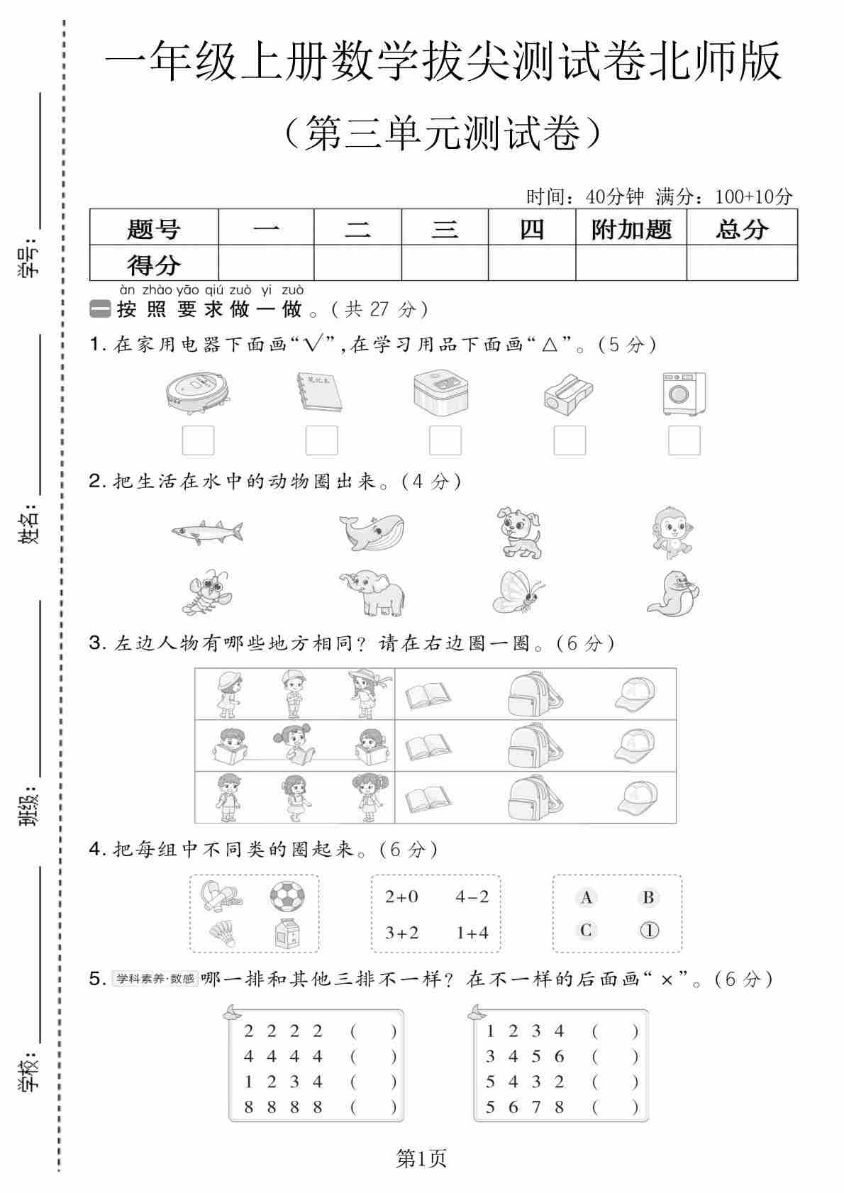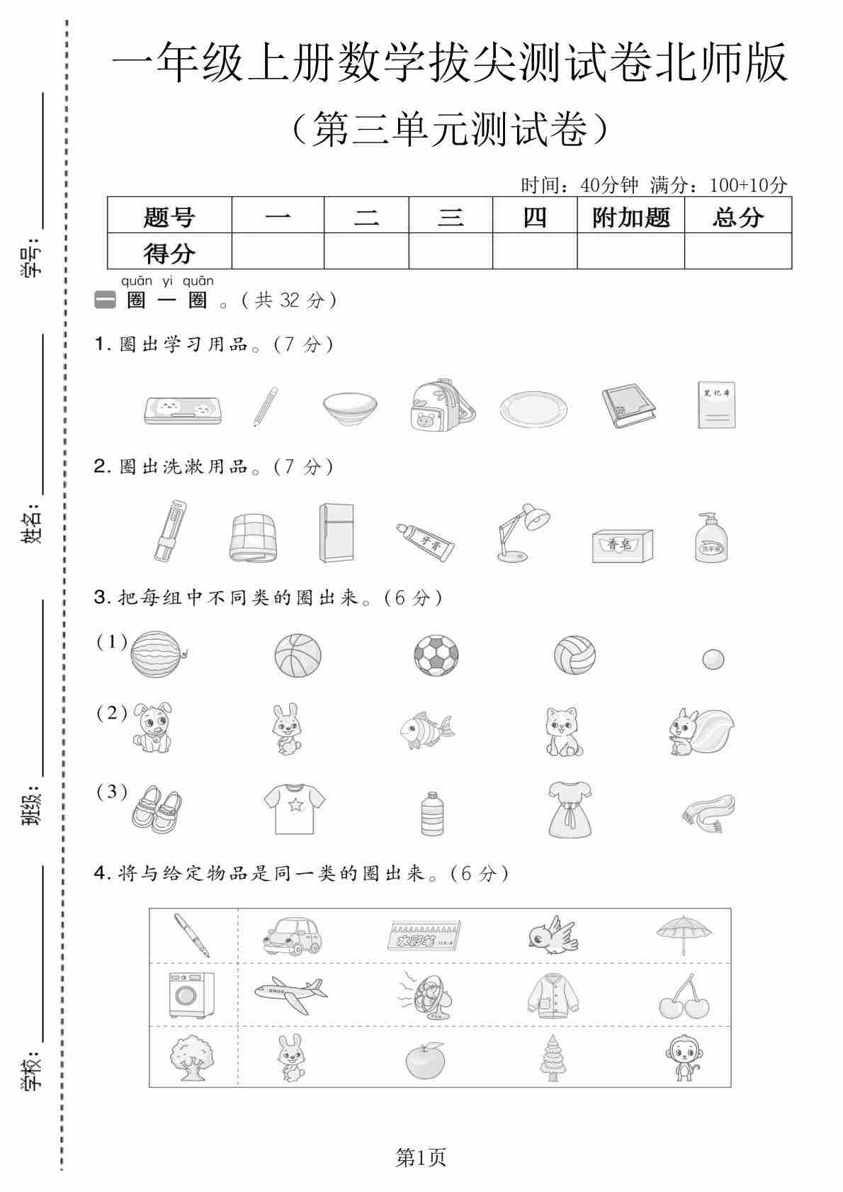 一(上)2025秋北师大版数学【第三单元测试卷1】
