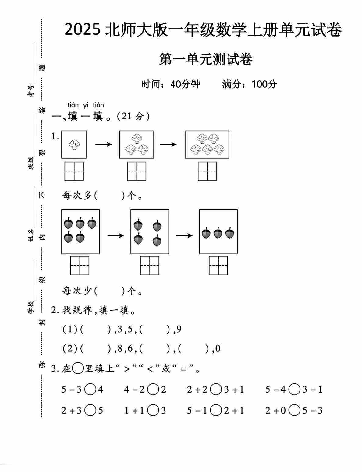 一(上)2025秋北师大版数学【第一单元测试卷3】