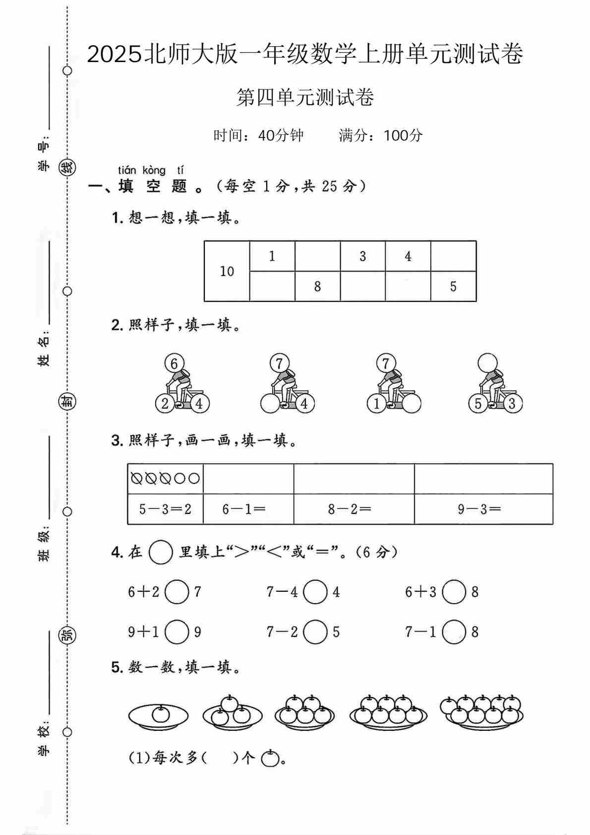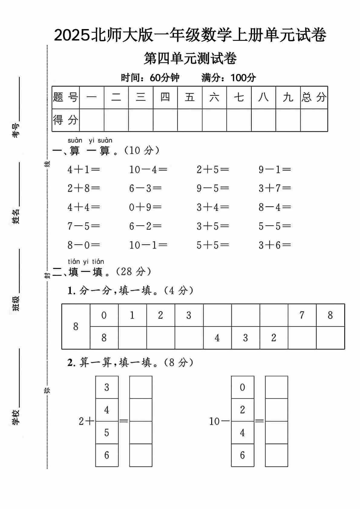 一(上)2025秋北师大版数学【第四单元测试卷1】