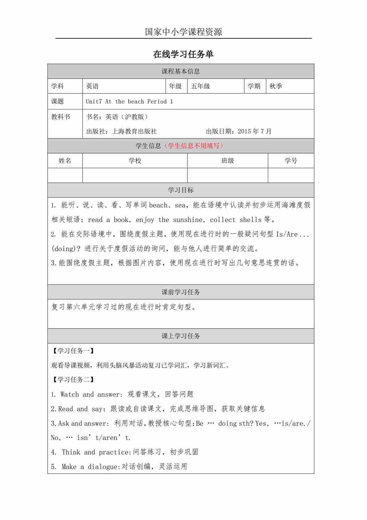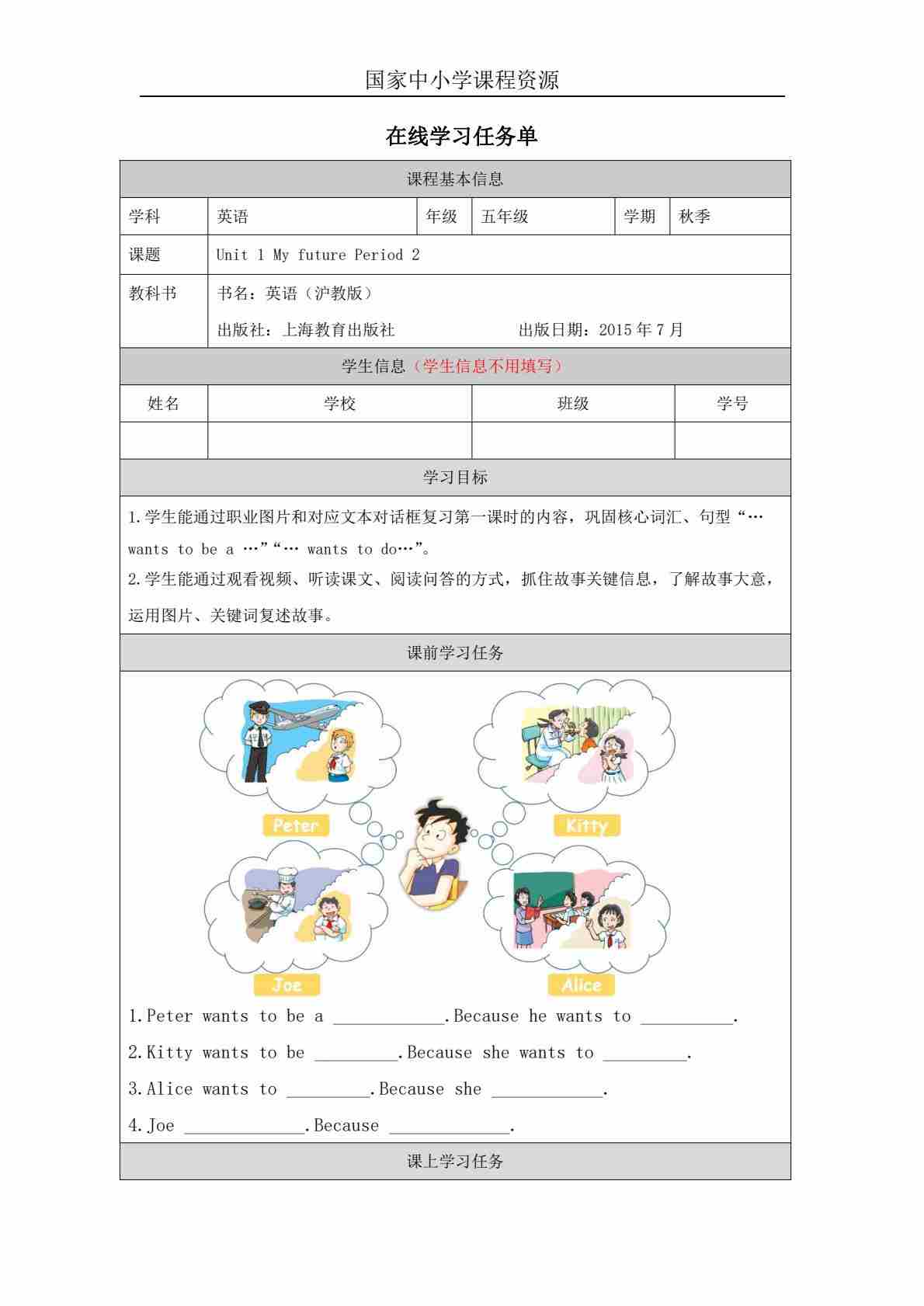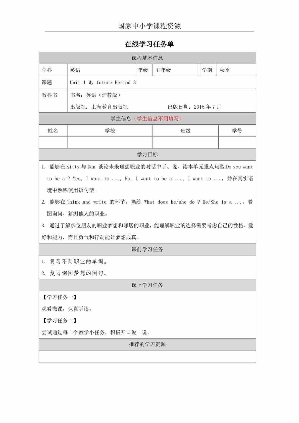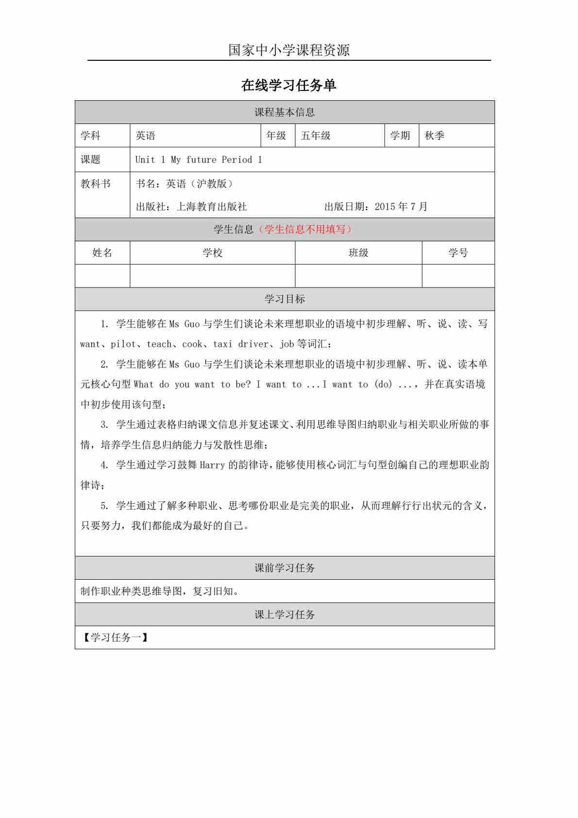 1 Unit 1 Period 1_学习任务单