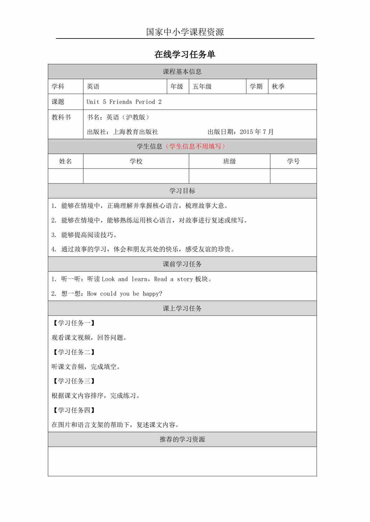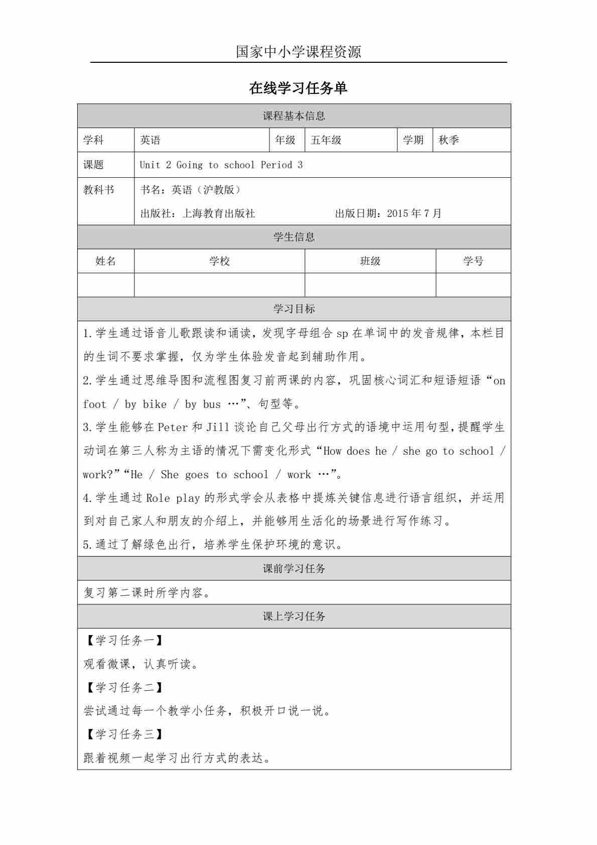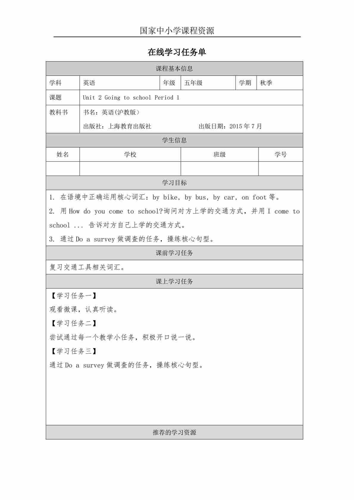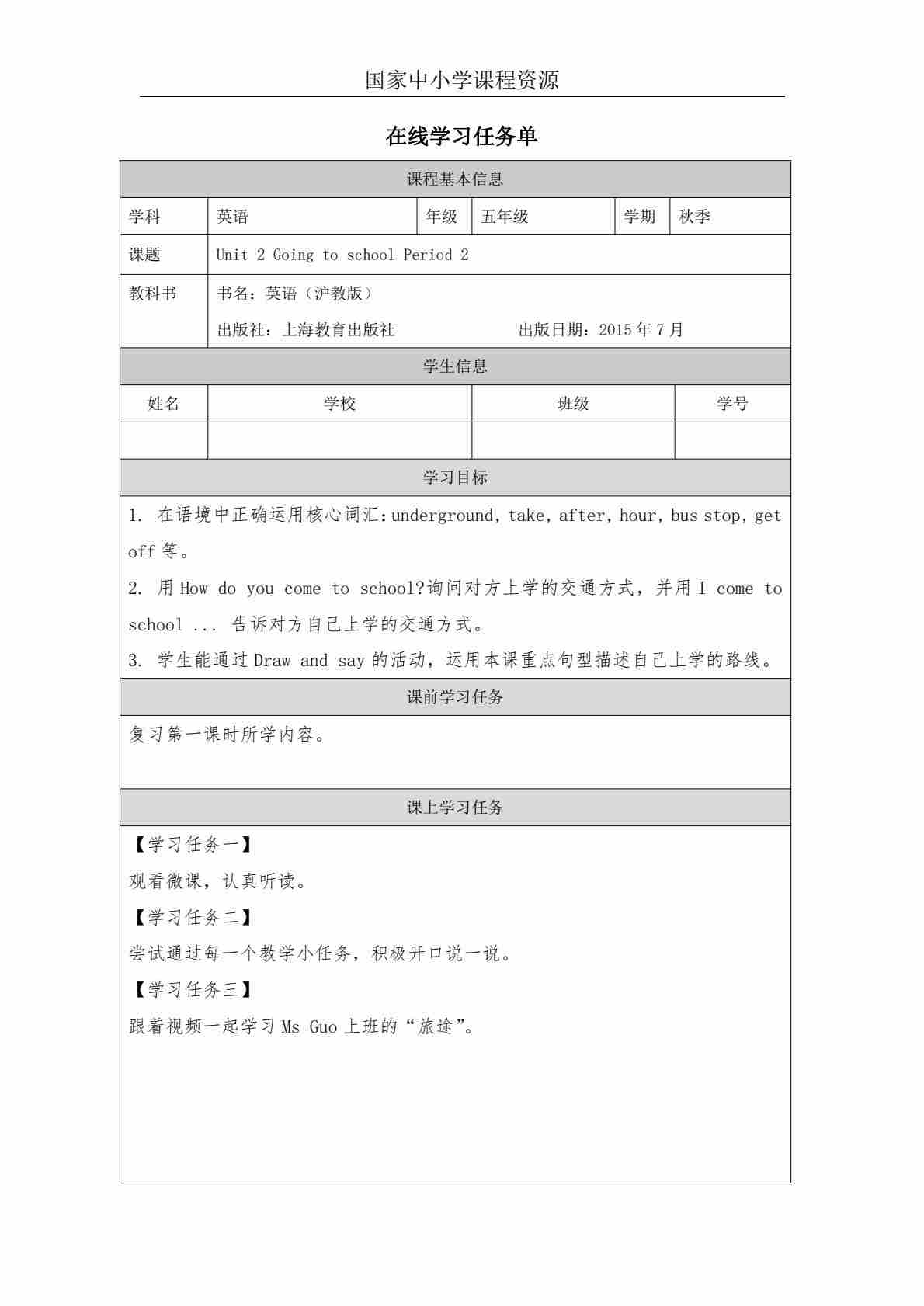 5 Unit 2 Period 2_学习任务单