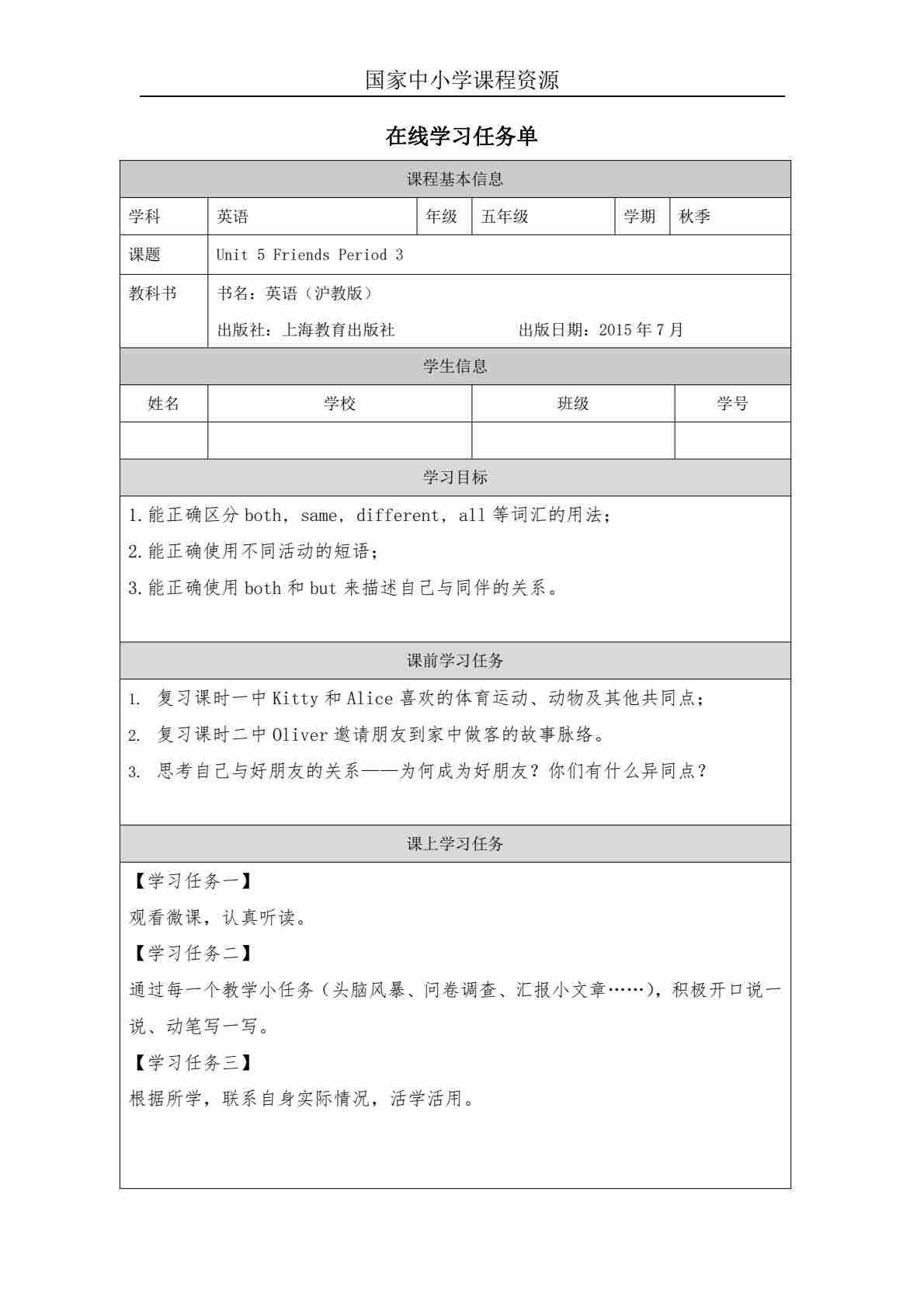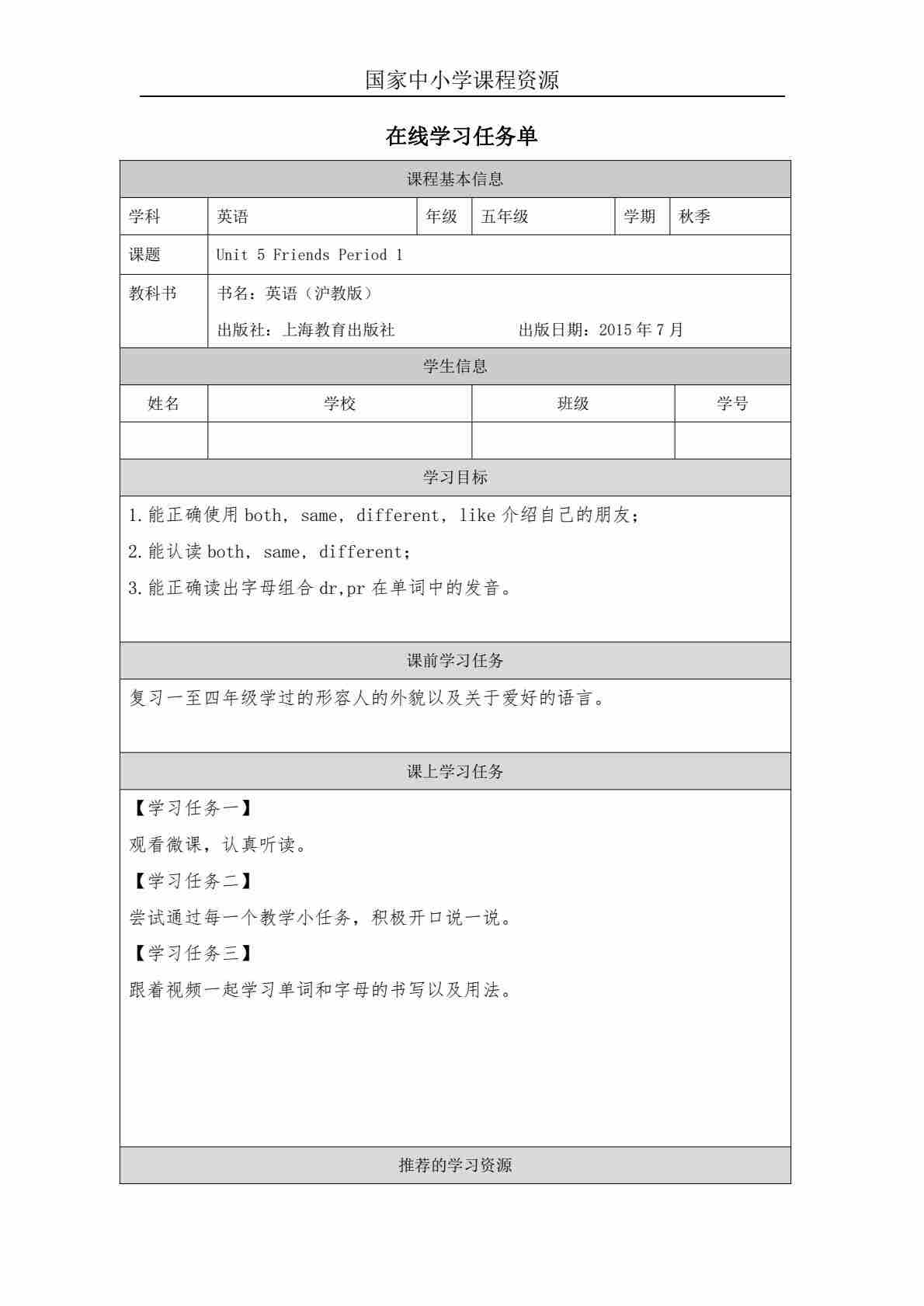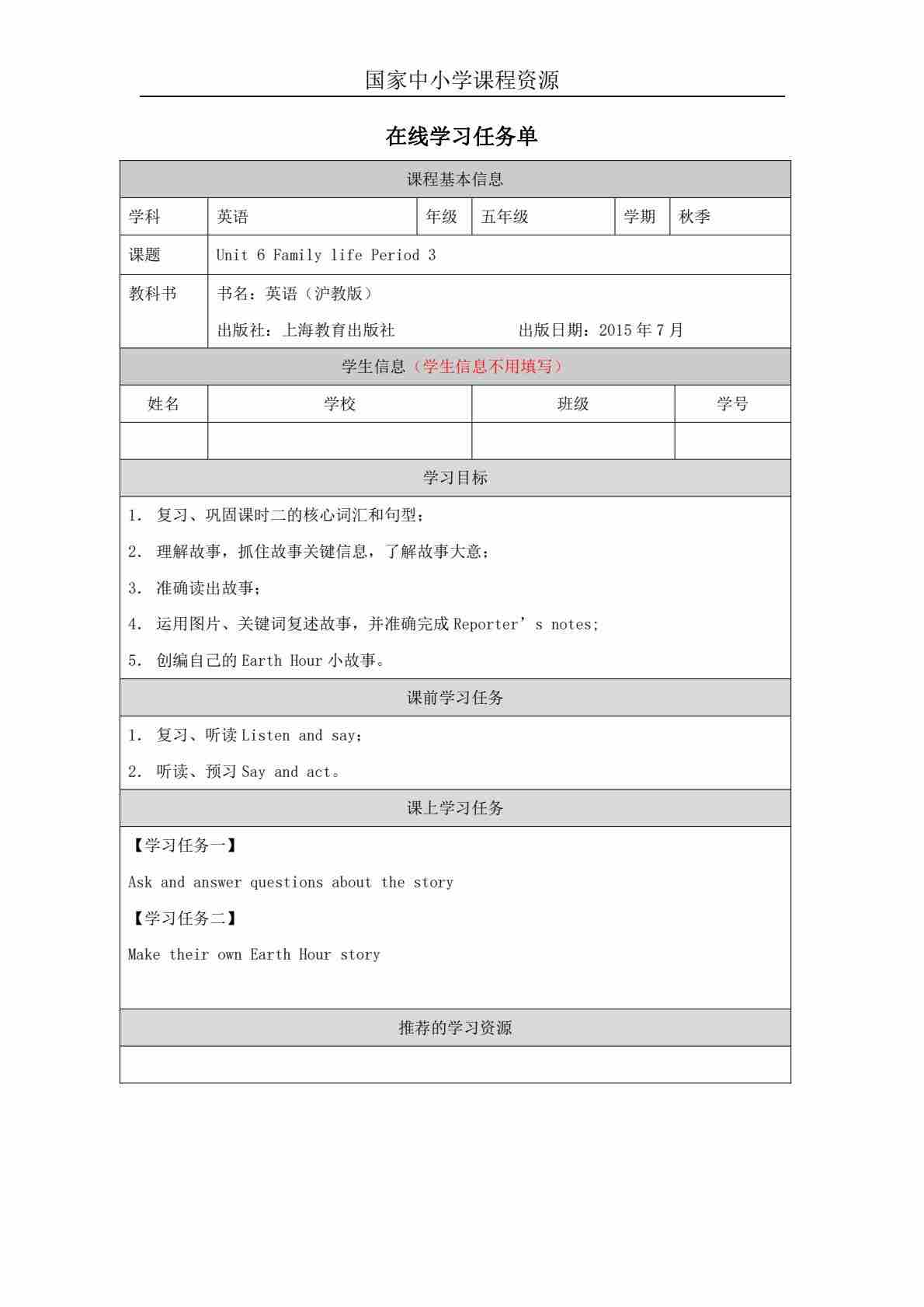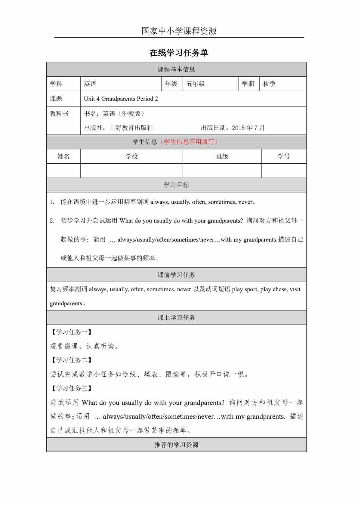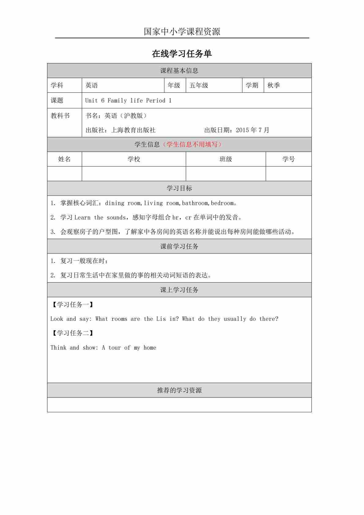 5 Unit 2 Period 2_学习任务单