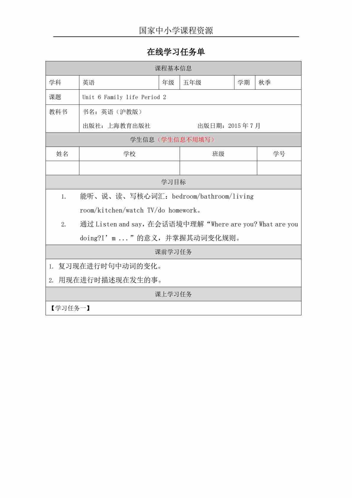 6 Unit 2 Period 3_学习任务单