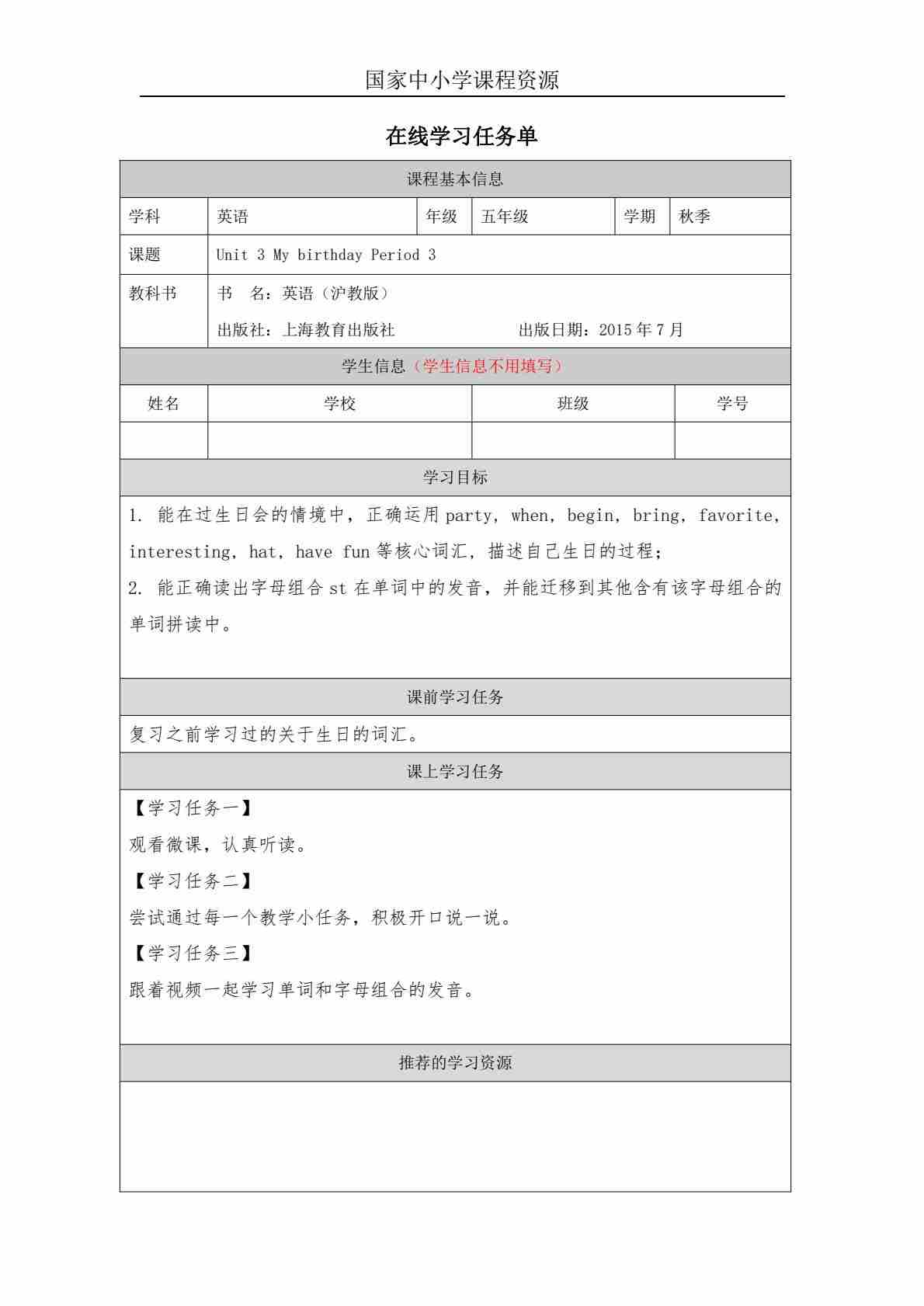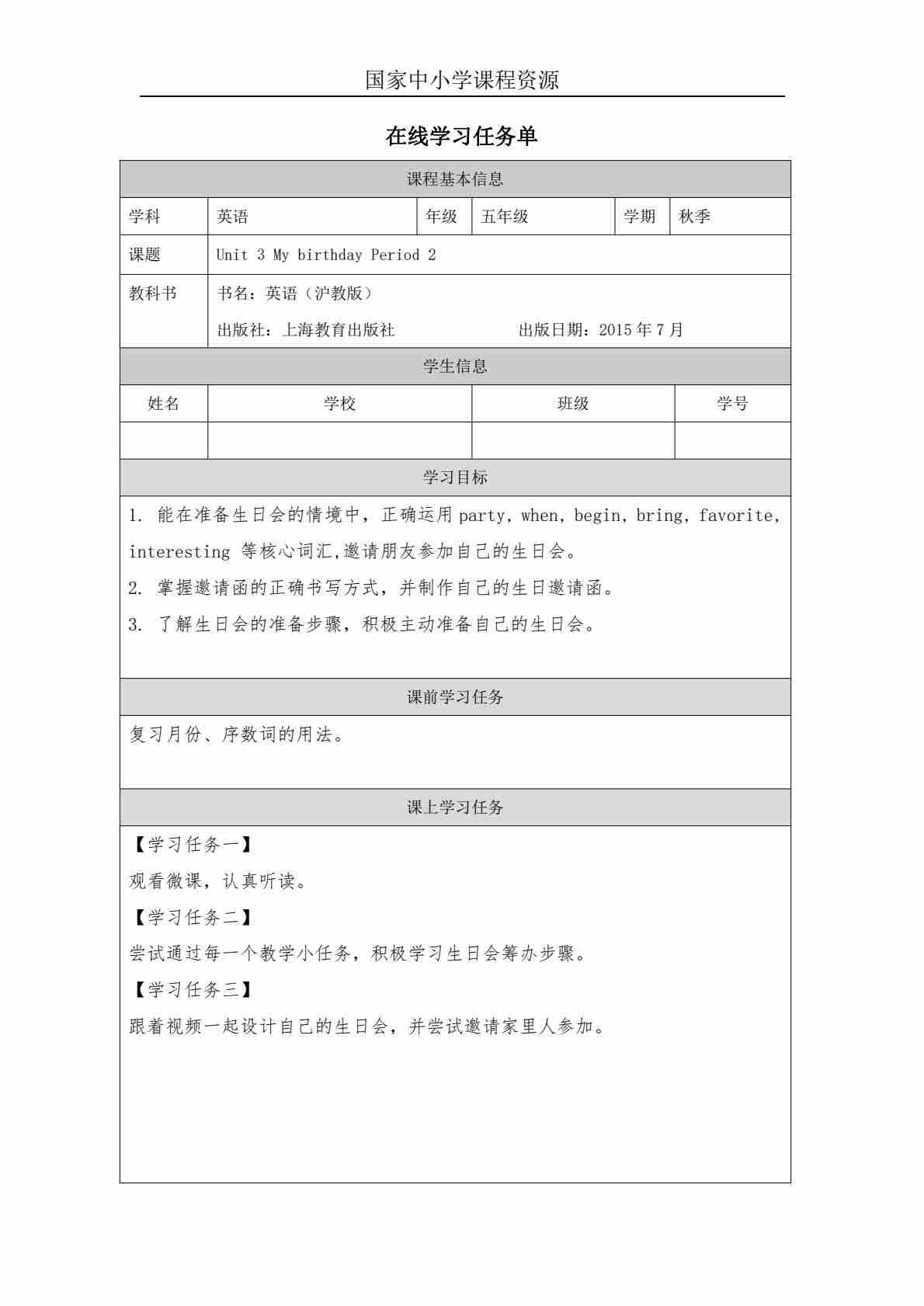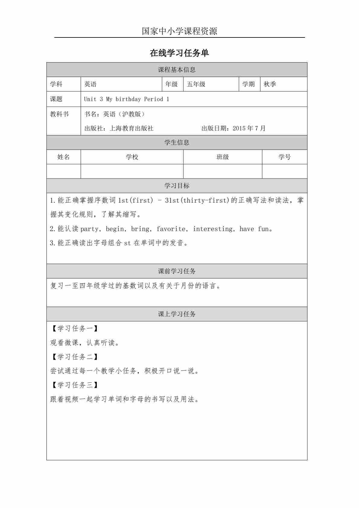 3 Unit 1 Period 3_学习任务单