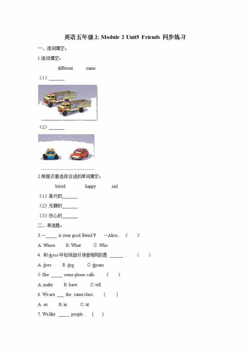 五年级上册英语一课一练- Module 2 Unit5 Friends 牛津上海版(三起)(word版,含答案解析)