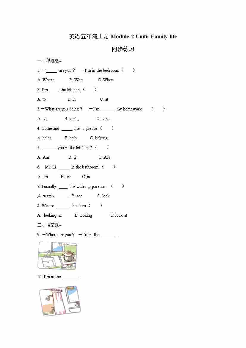 五年级上册英语一课一练- Module 2 Unit6 Family life 牛津上海版(三起)(word版,含答案解析)