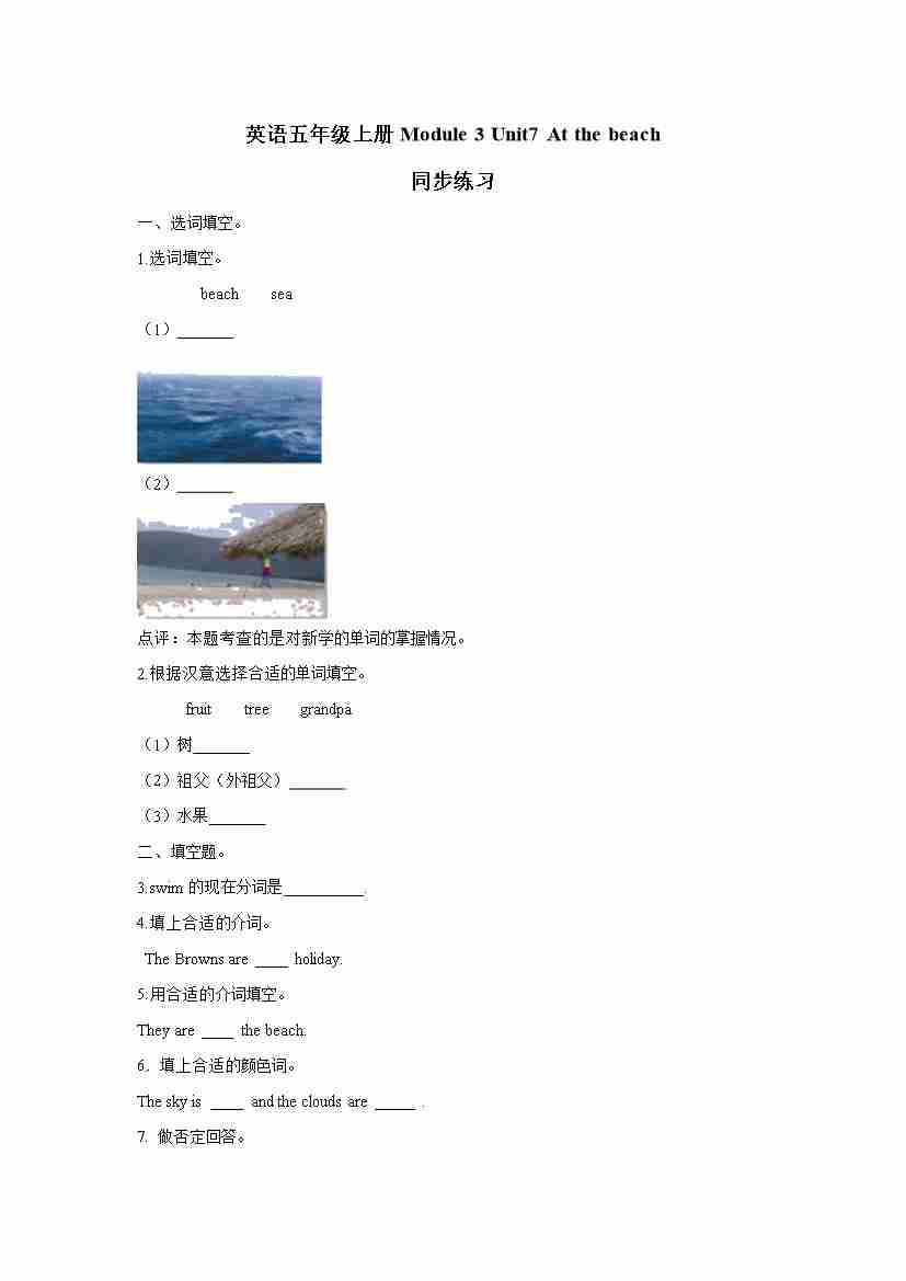 五年级上册英语一课一练- Module 3 Unit7 At the beach 牛津上海版(三起)(word版,含答案解析)