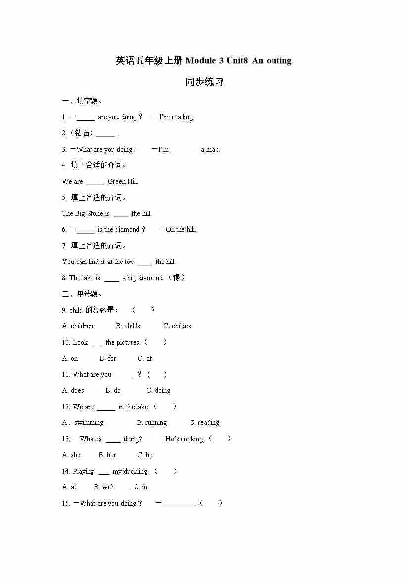 五年级上册英语一课一练- Module 3 Unit8 An outing 牛津上海版(三起)(word版,含答案解析)