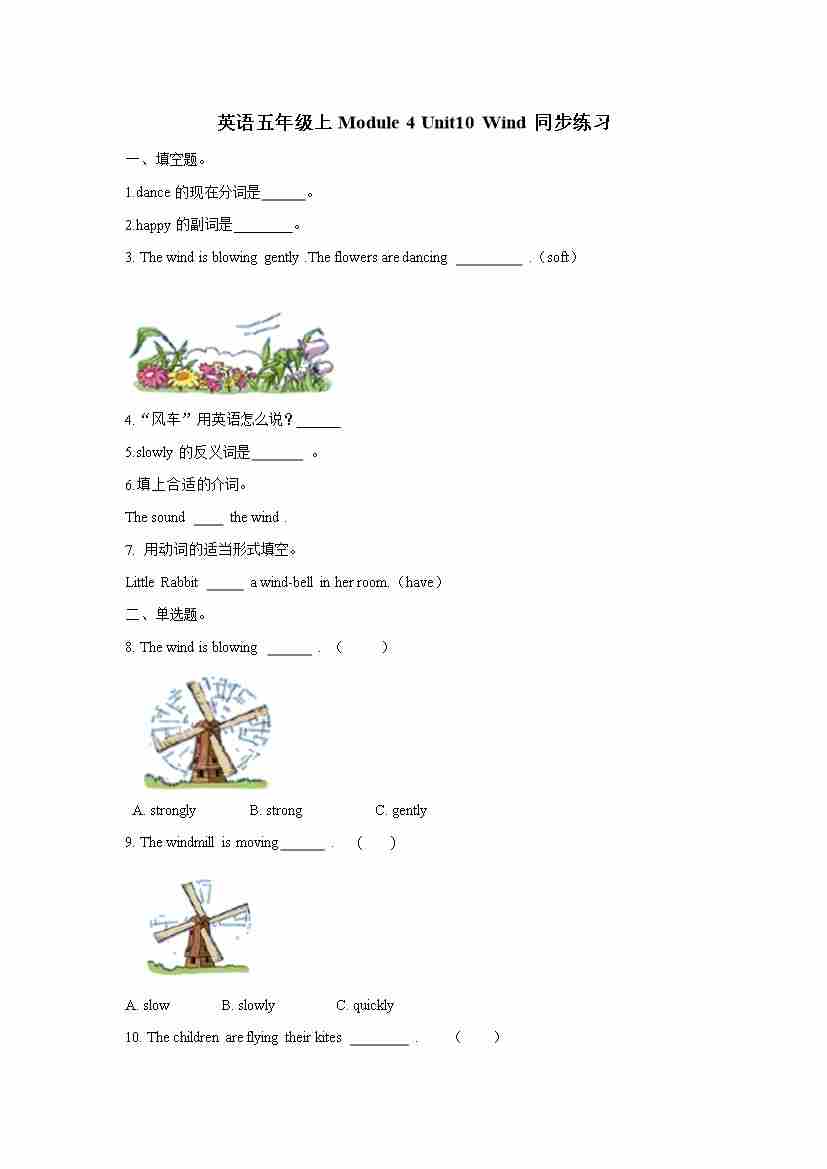 五年级上册英语一课一练- Module 4 Unit10 Wind 牛津上海版(三起)(word版,含答案解析)