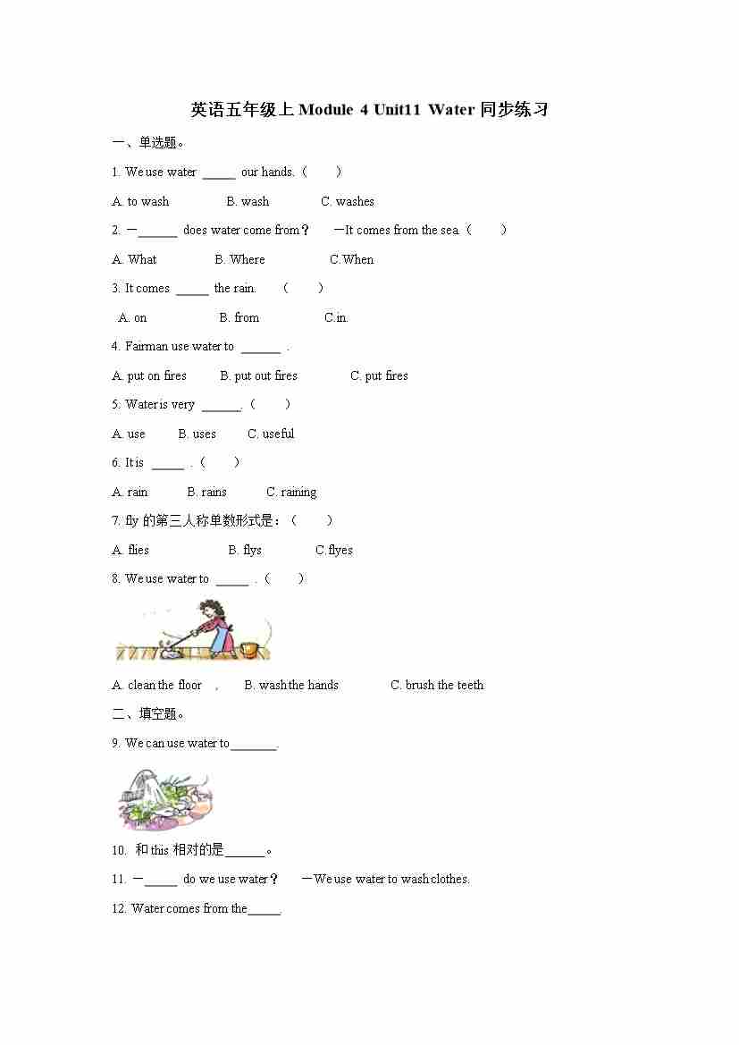 五年级上册英语一课一练- Module 4 Unit11 Water 牛津上海版(三起)(word版,含答案解析)
