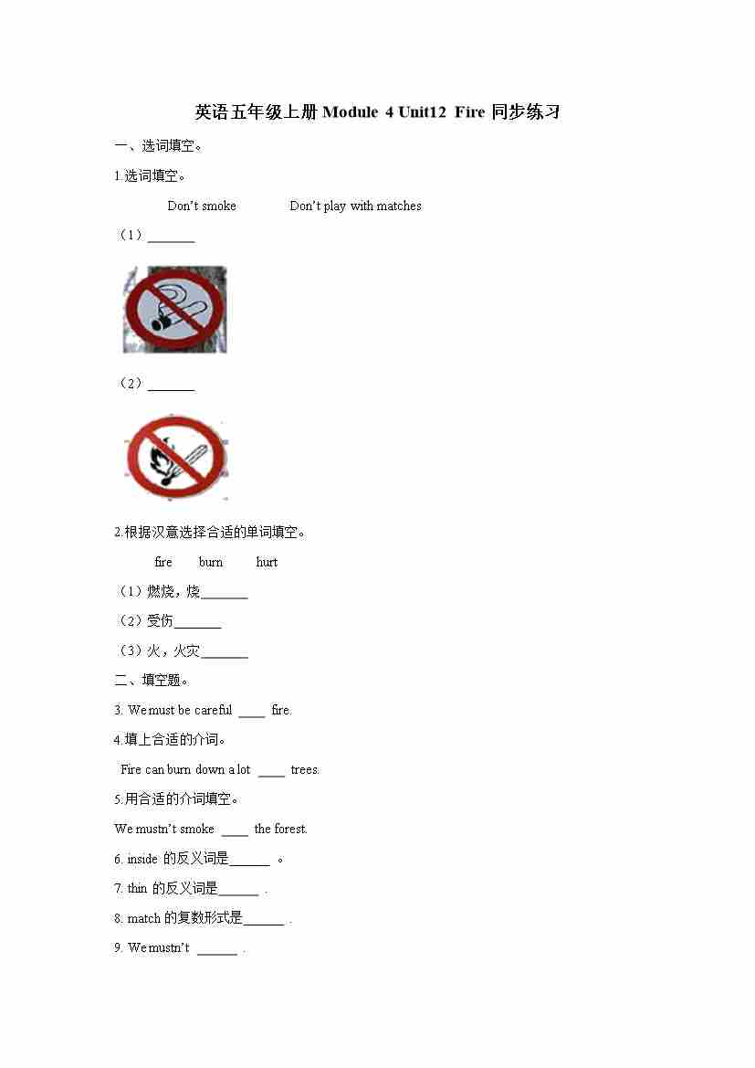 五年级上册英语一课一练- Module 4 Unit12 Fire 牛津上海版(三起)(word版,含答案解析)