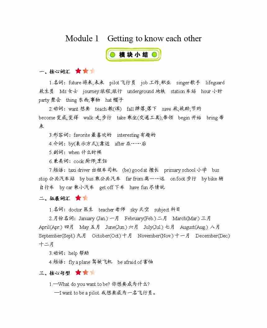 五年级上册英语知识点梳理-Module 1Getting to know each other
