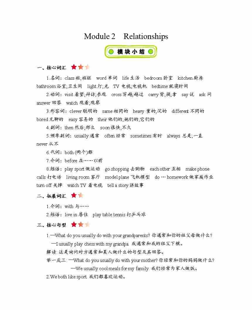 五年级上册英语知识点梳理-Module 2 Relationships