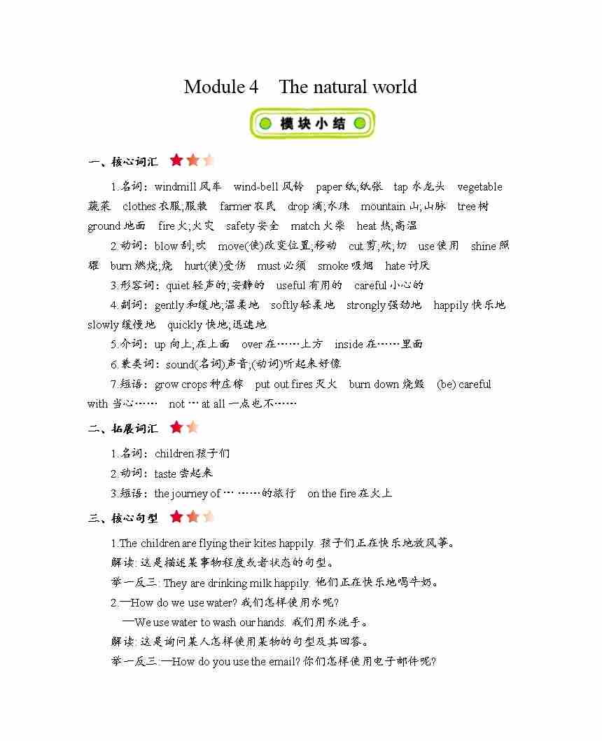 五年级上册英语知识点梳理-Module 4 The natural world