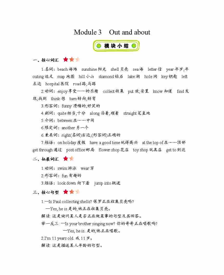 五年级上册英语素材-Module 3 Out and about知识清单牛津上海版(三起)