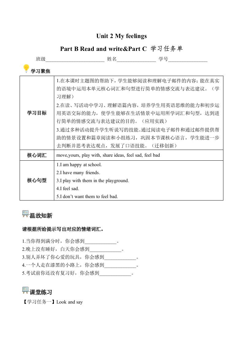 Unit 2 第6课时 Part B Read and write&Part C (学习任务单) (新教材)