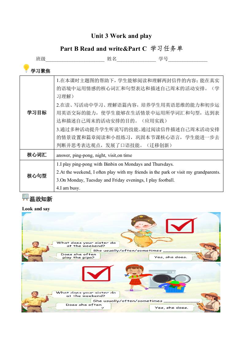 Unit 3 第6课时 Part B Read and write&Part C (学习任务单)(新教材)