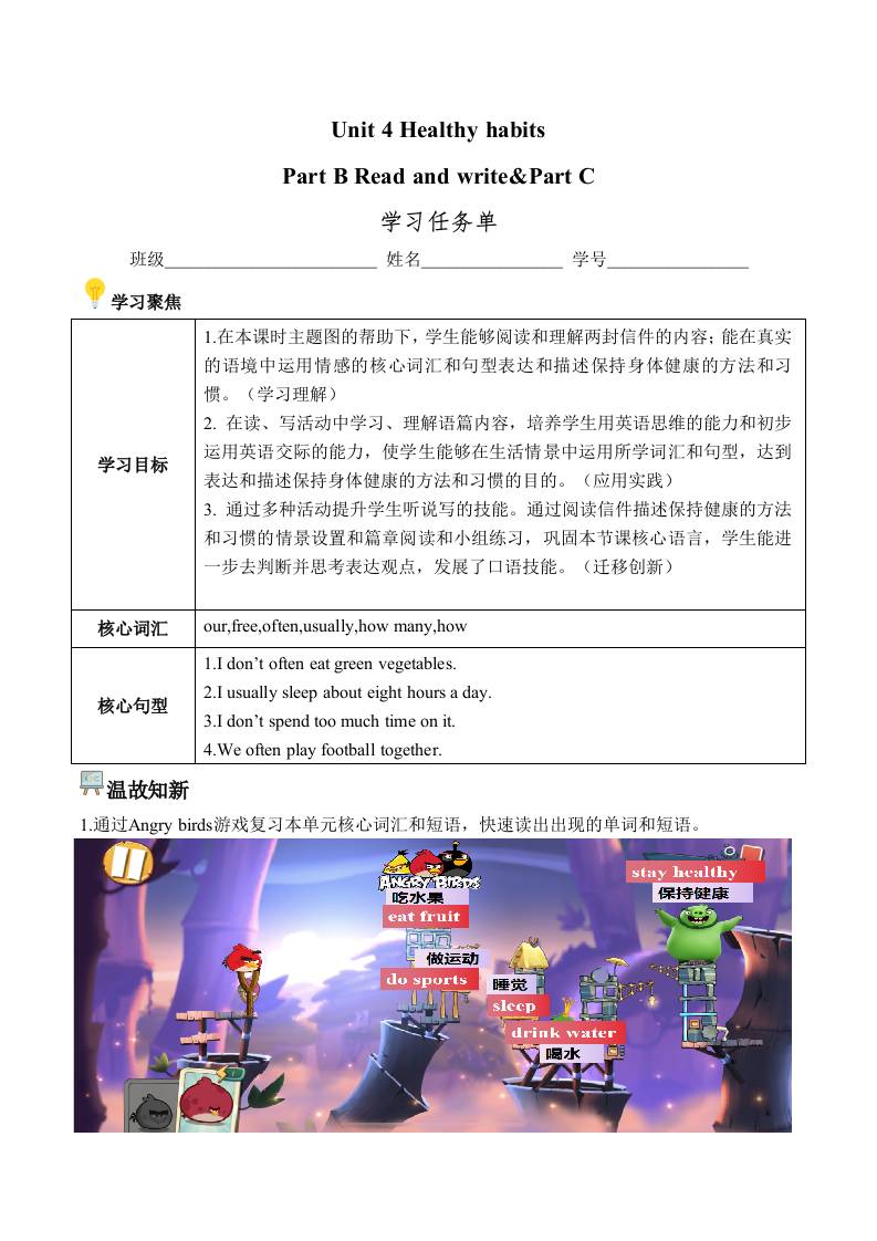 Unit 4 第6课时 Part B Read and write&Part C (学习任务单)(新教材)