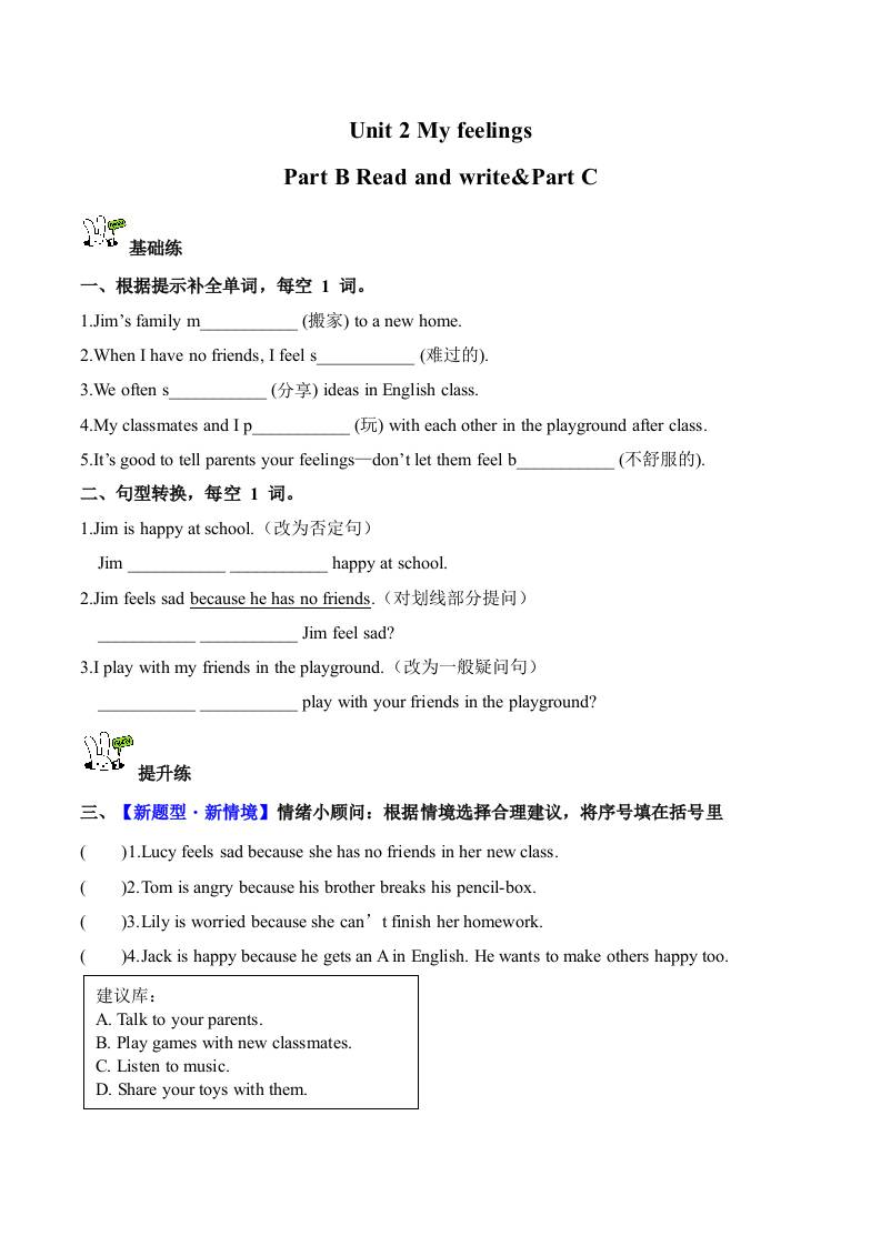 Unit 2 第6课时 Part B Read and write&Part C (分层作业) (新教材)