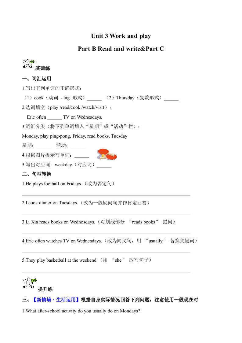 Unit 3 第6课时 Part B Read and write&Part C (分层作业)(新教材)