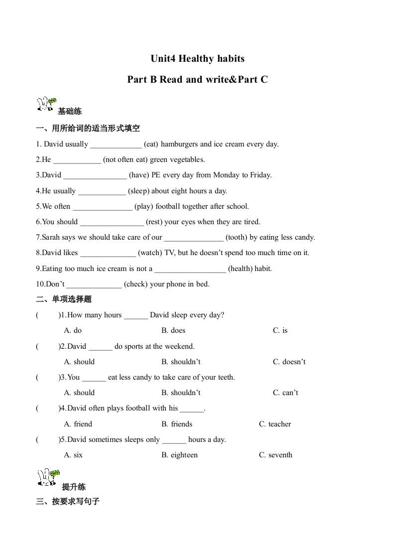 Unit 4 第6课时 Part B Read and write&Part C (分层作业)(新教材)
