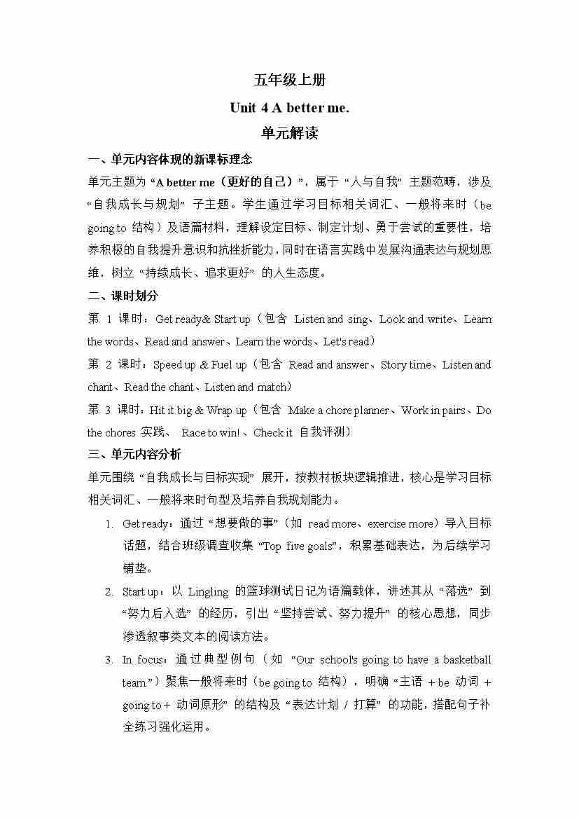 Unit 4 A better me (单元解读讲义)英语外研版三起五年级上册(新教材)