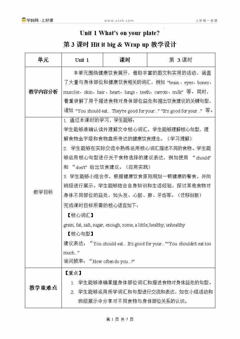 Unit 1 第3课时 Hit it big & Wrap up (教学设计)英语外研版三起五年级上册(新教材)
