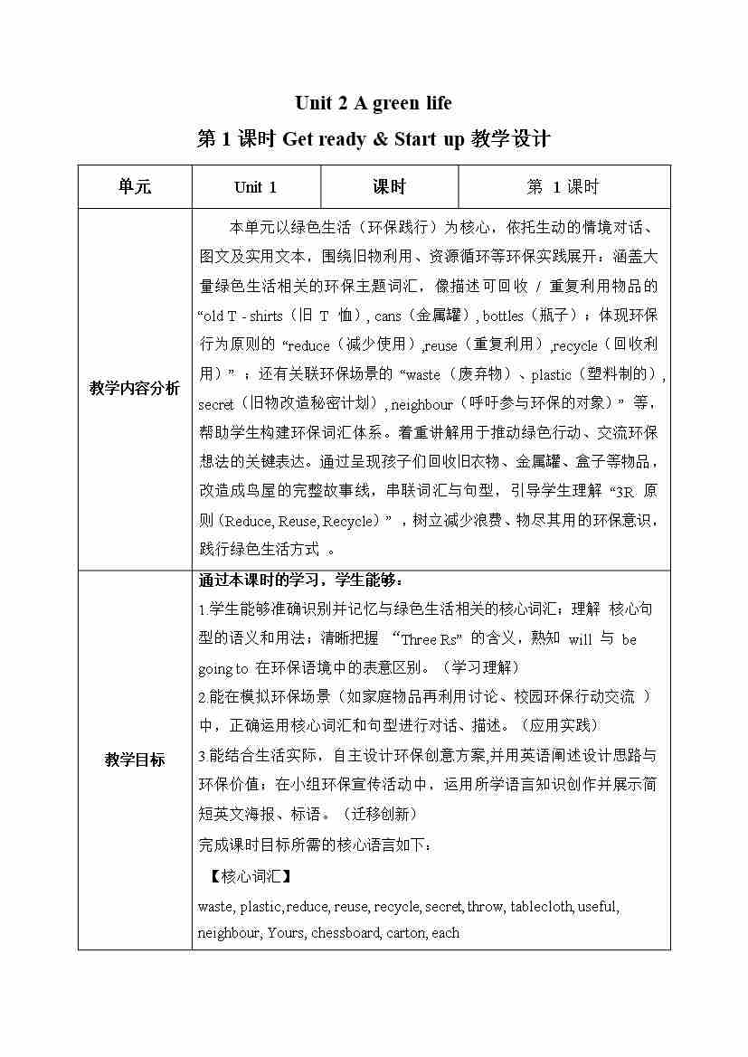 Unit 2 第1课时 Get ready & Start up (教学设计)英语外研版三起五年级上册(新教材)