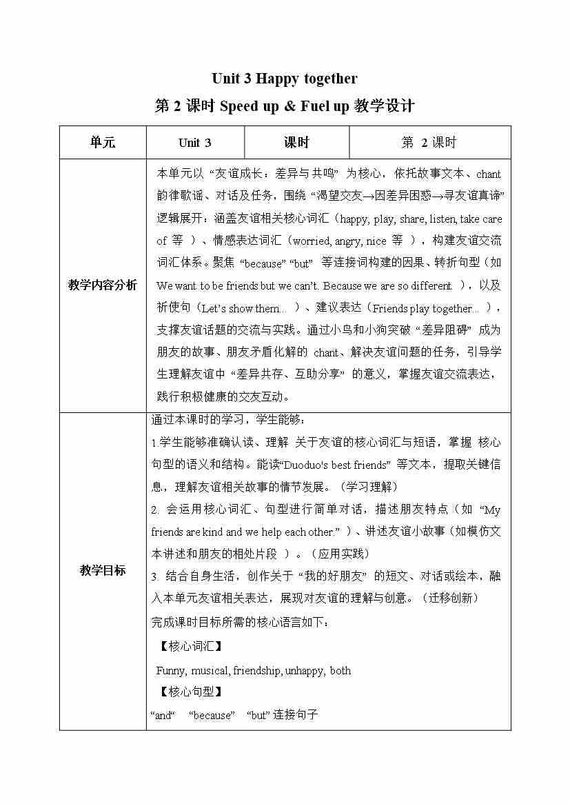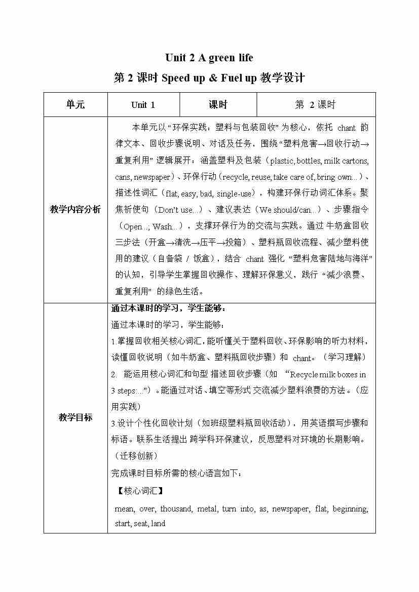 Unit 2 第2课时 Speed up & Fuel up (教学设计)英语外研版三起五年级上册(新教材)