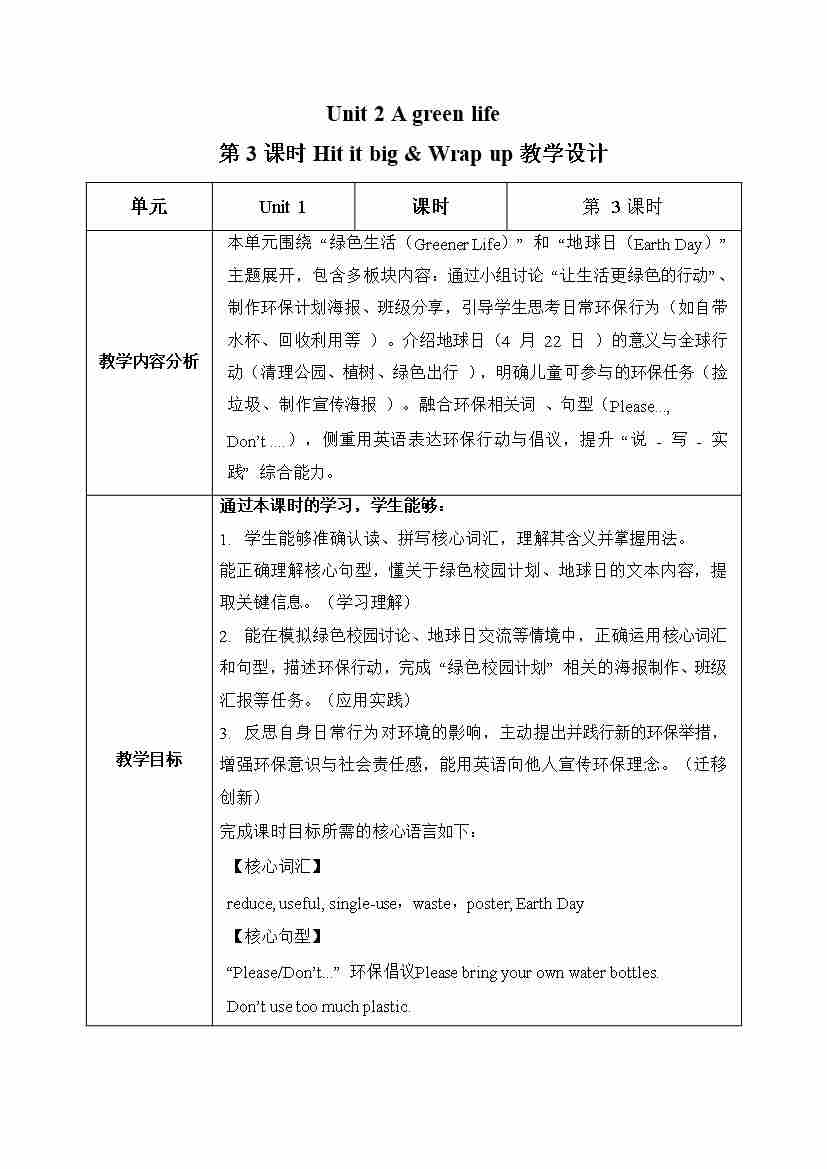 Unit 2 第3课时 Hit it big & Wrap up (教学设计)英语外研版三起五年级上册(新教材)
