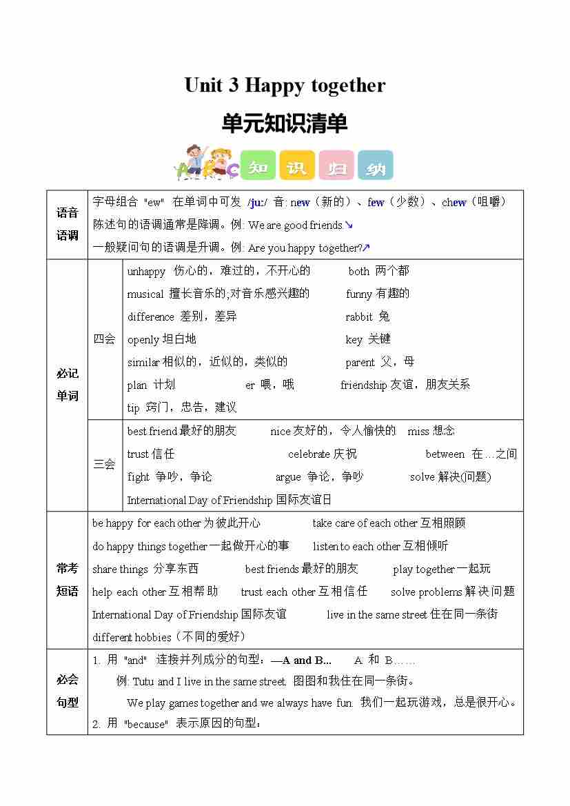 Unit 3 Happy together(知识清单)英语外研版三起五年级上册(新教材)
