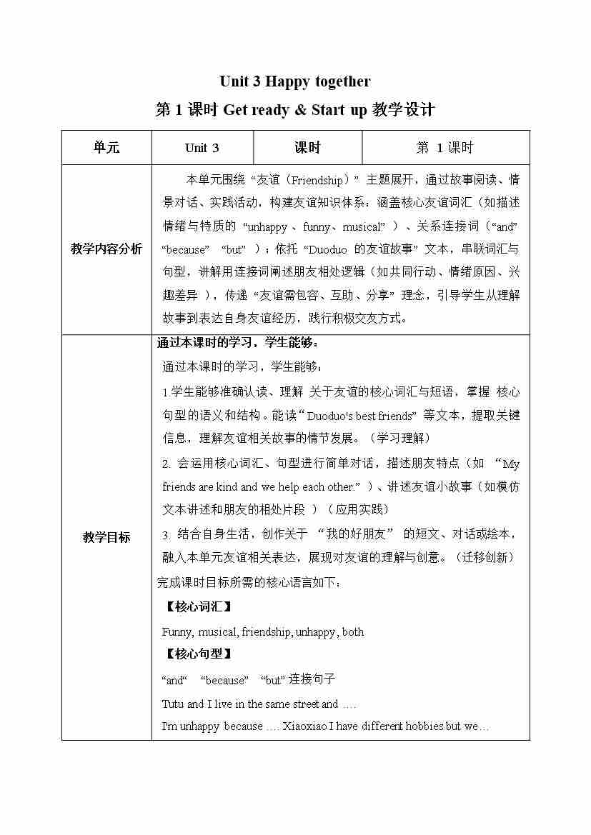Unit 3 第1课时 Get ready & Start up (教学设计)英语外研版三起五年级上册(新教材)
