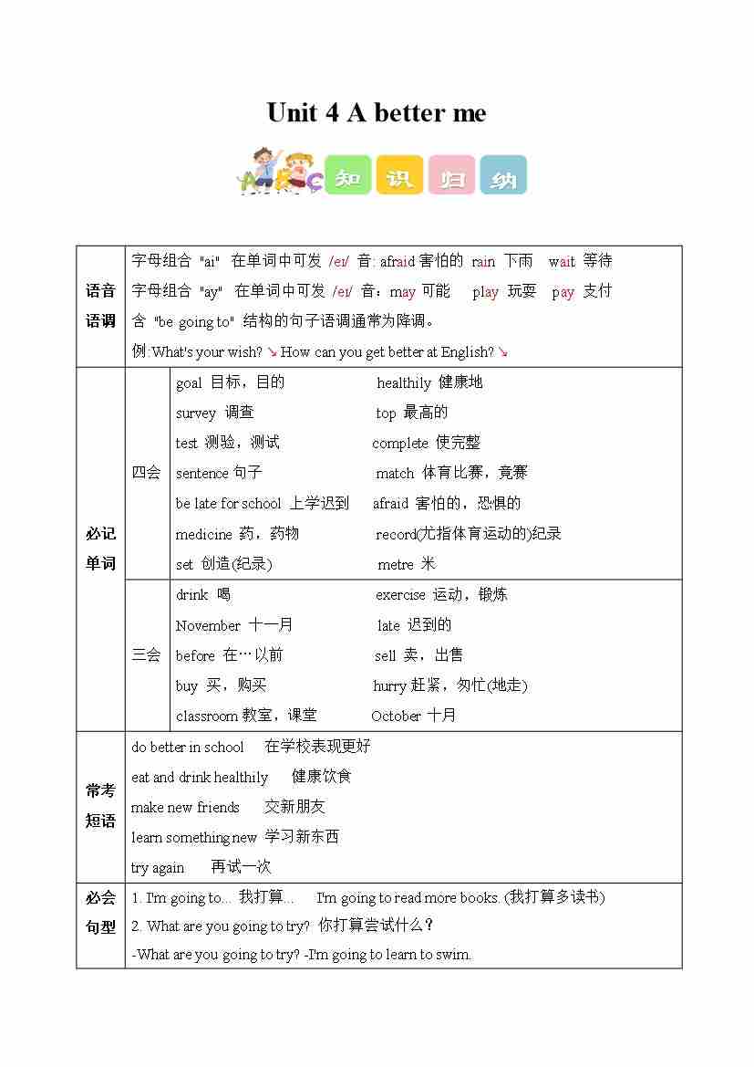 Unit 4 A better me(知识清单)英语外研版三起五年级上册(新教材)
