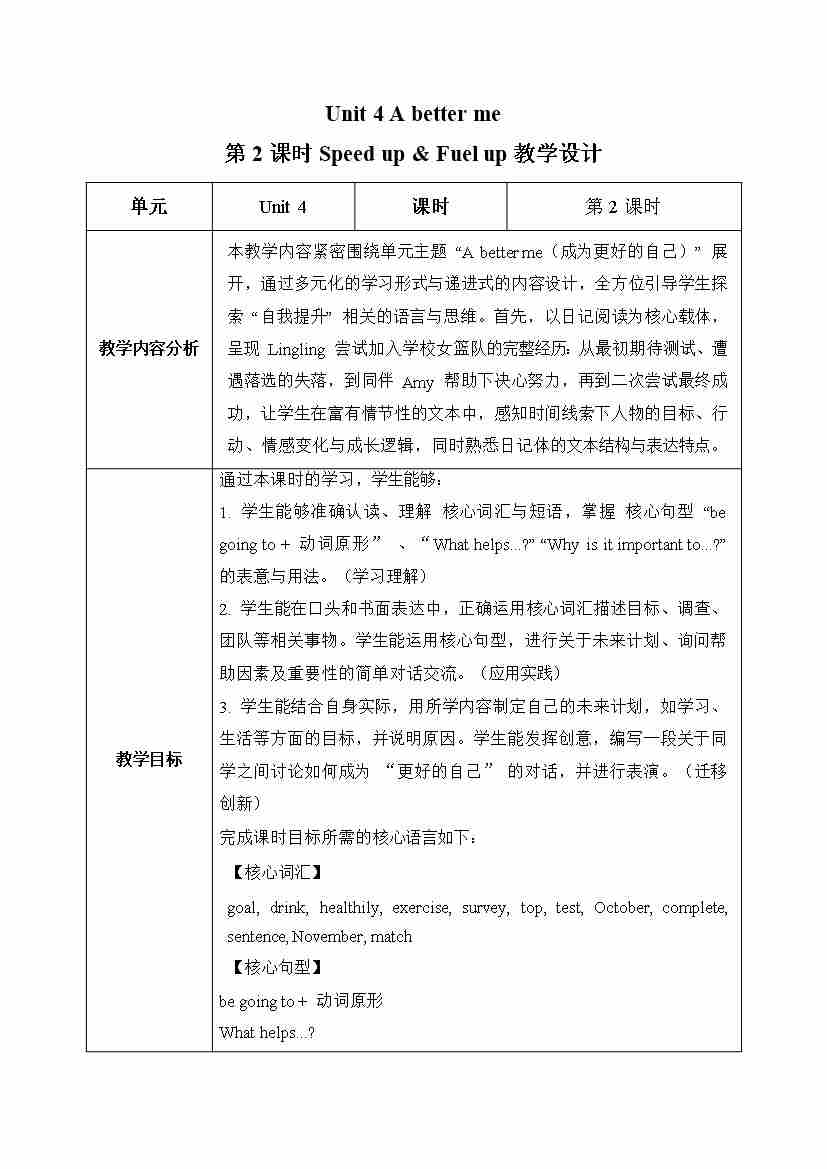 Unit 4 第2课时Speed up & Fuel up (教学设计)英语外研版三起五年级上册(新教材)
