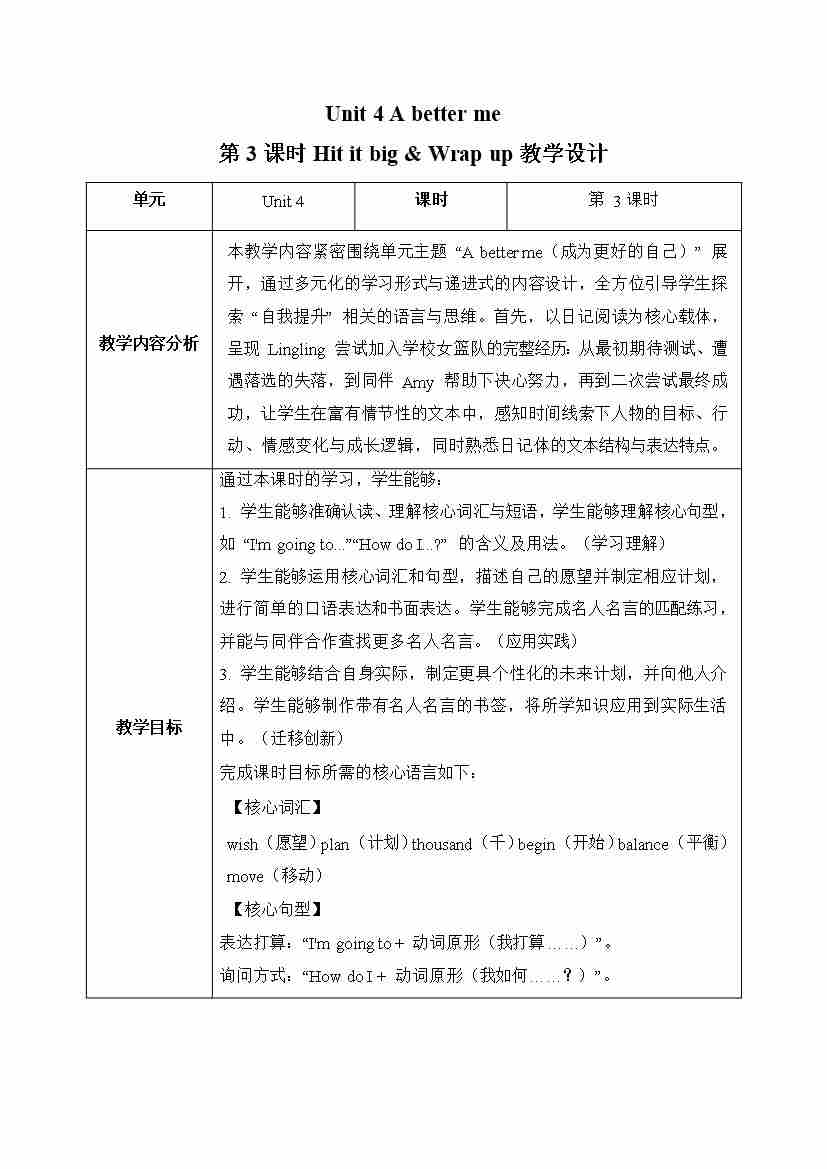 Unit 4 第3课时Hit it big & Wrap up (教学设计)英语外研版三起五年级上册(新教材)