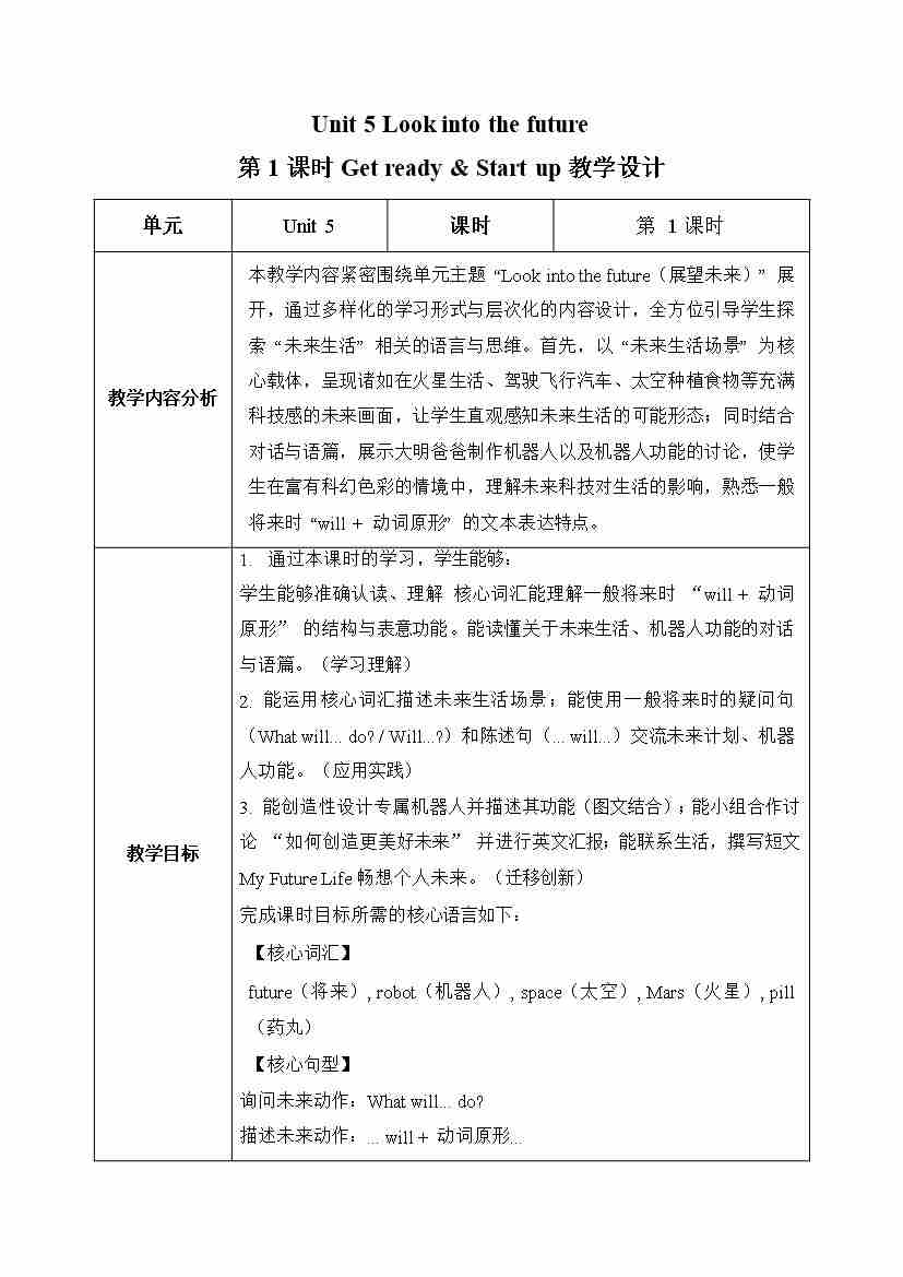 Unit 5 第1课时 Get ready & Start up (教学设计)英语外研版三起五年级上册(新教材)