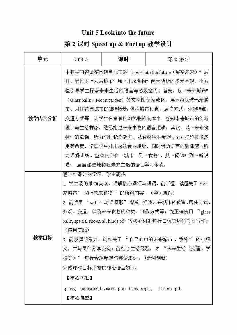 Unit 1 第2课时 Speed up & Fuel up (教学设计)英语外研版三起五年级上册(新教材)