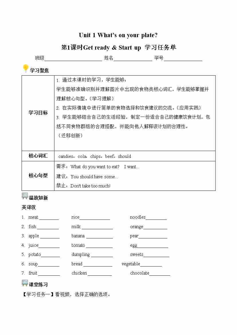 五上外研Unit 1 第1课时 Get ready & Start up (学习任务单)英语外研版三起五年级上册(新教材)1.