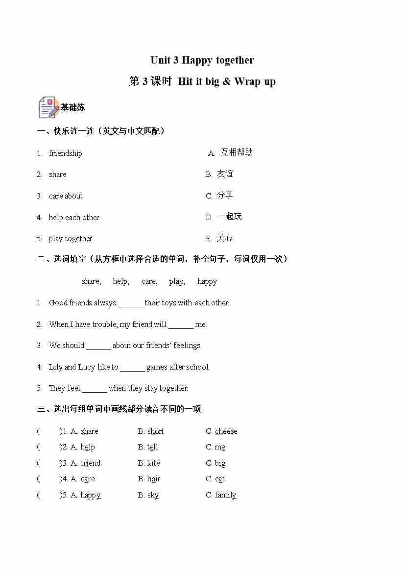 五上外研三起Unit 3 第3课时 Hit it big & Wrap up (分层作业)英语外研版三起五年级上册(新教材)9