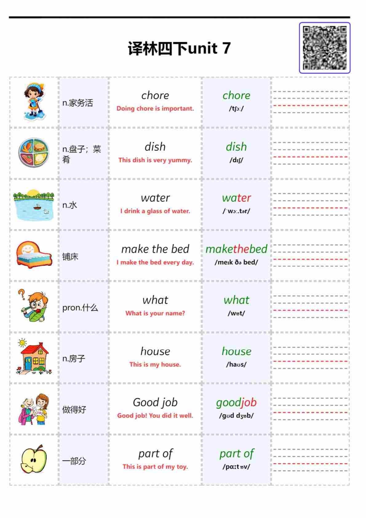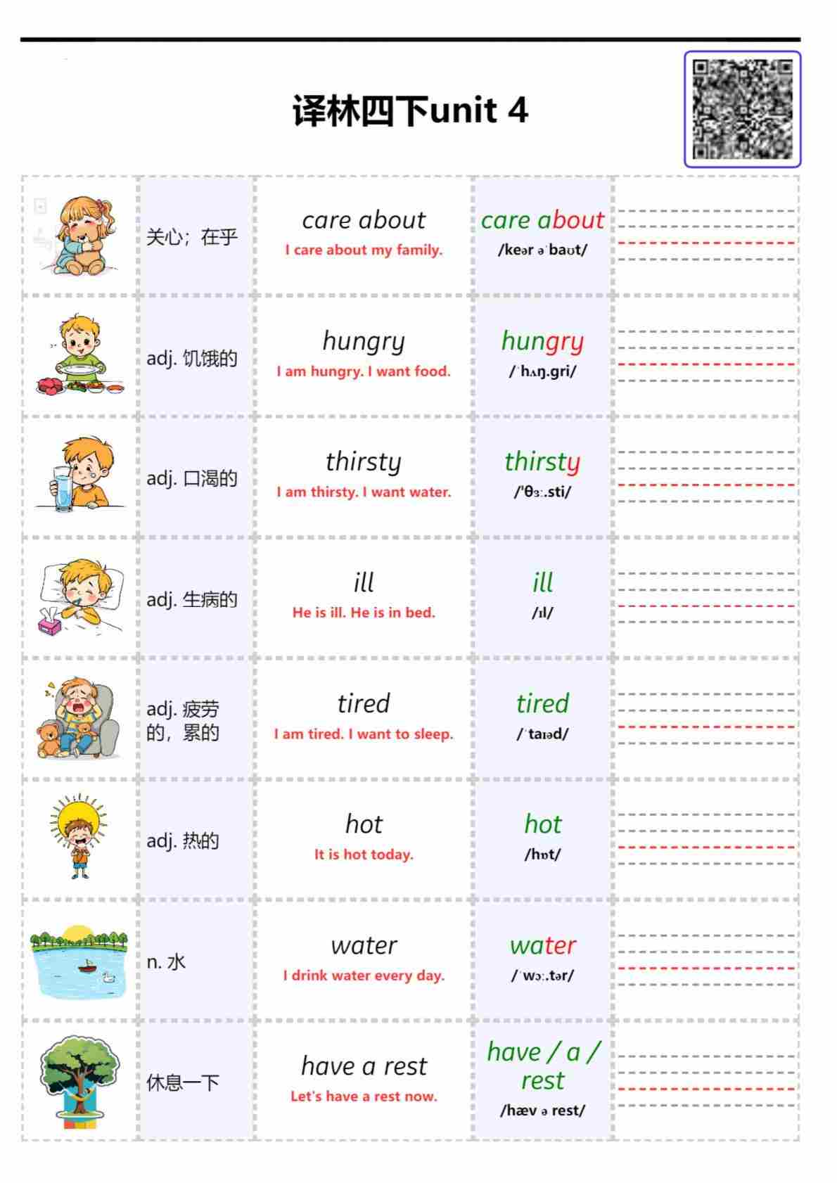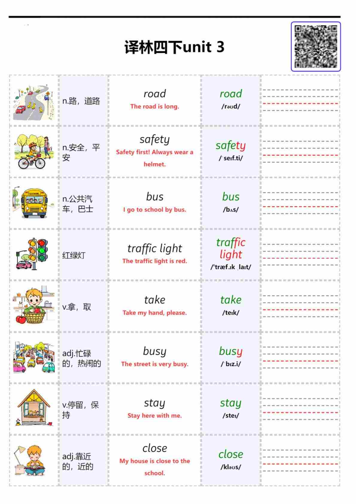 2026春译林英语四下单词批注 Unit 3