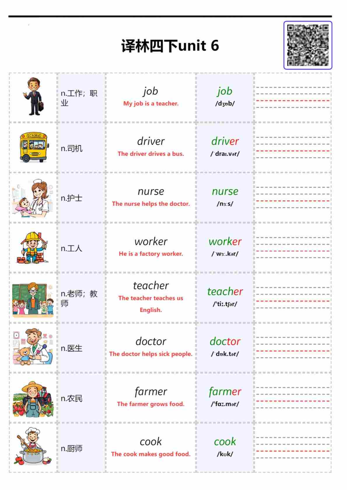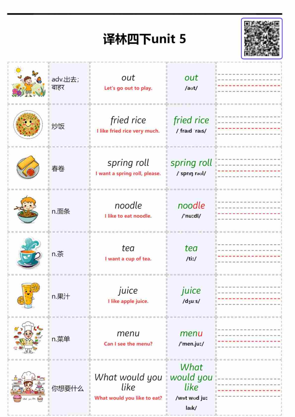 2026春译林英语四下单词批注 Unit 4