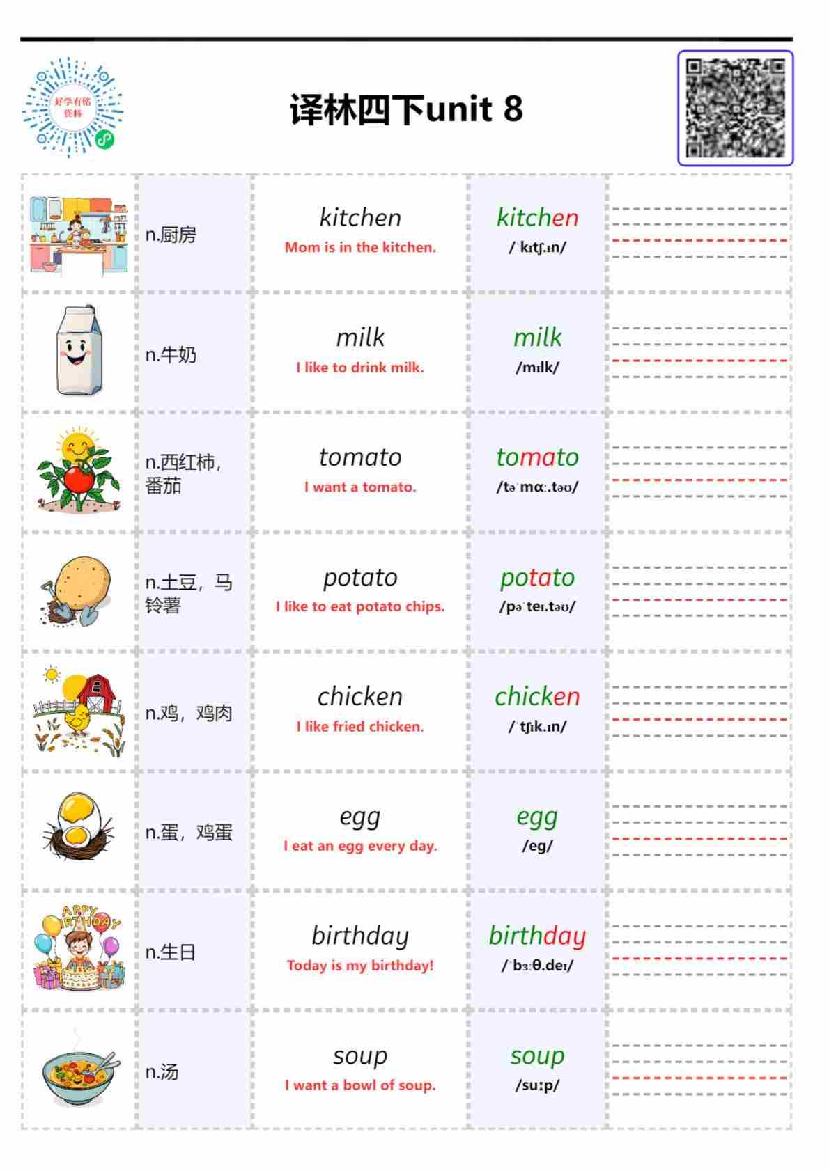 2026春译林英语四下自然拼读 Unit 8