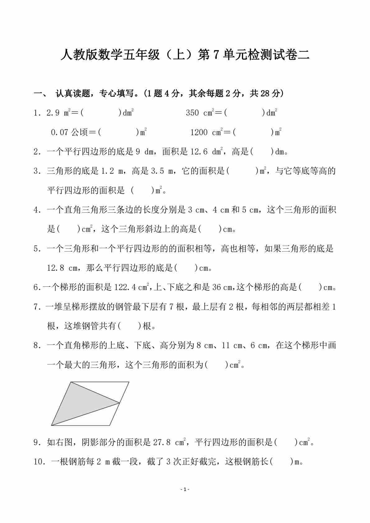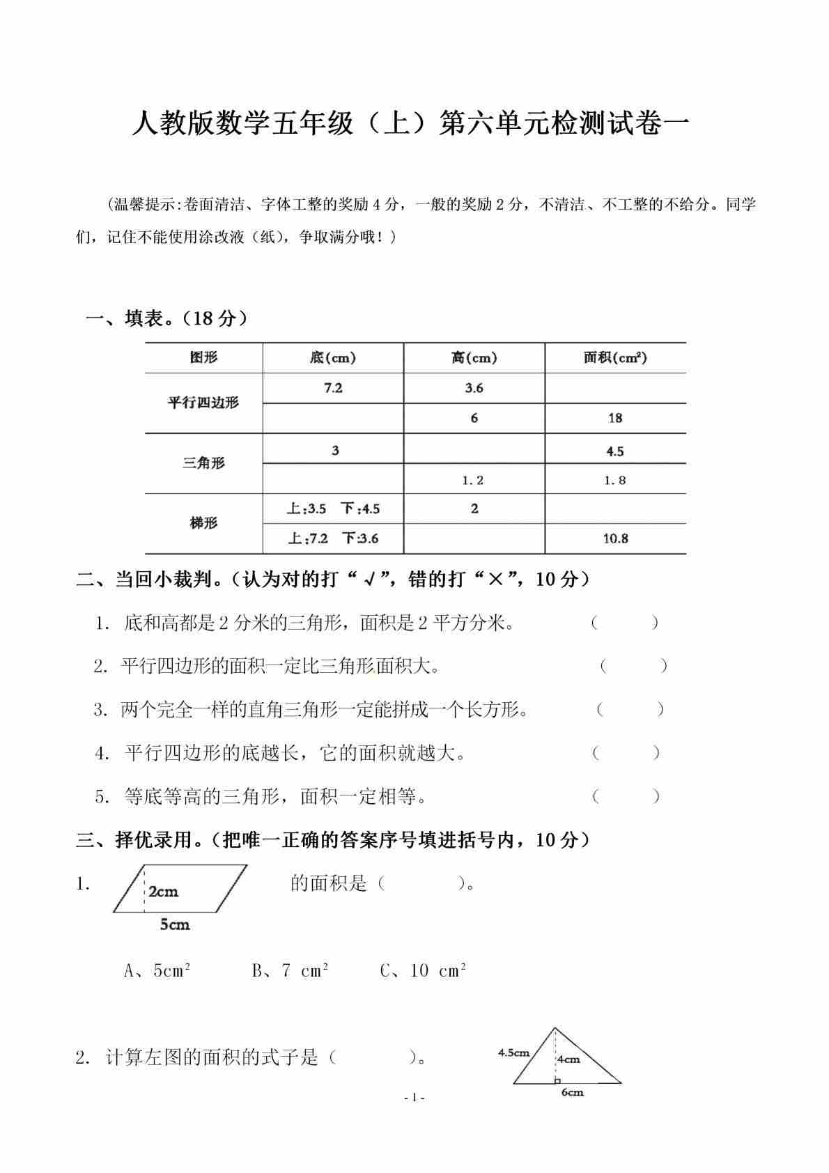 五(上)数学(人教版)第八单元总复习 检测卷一