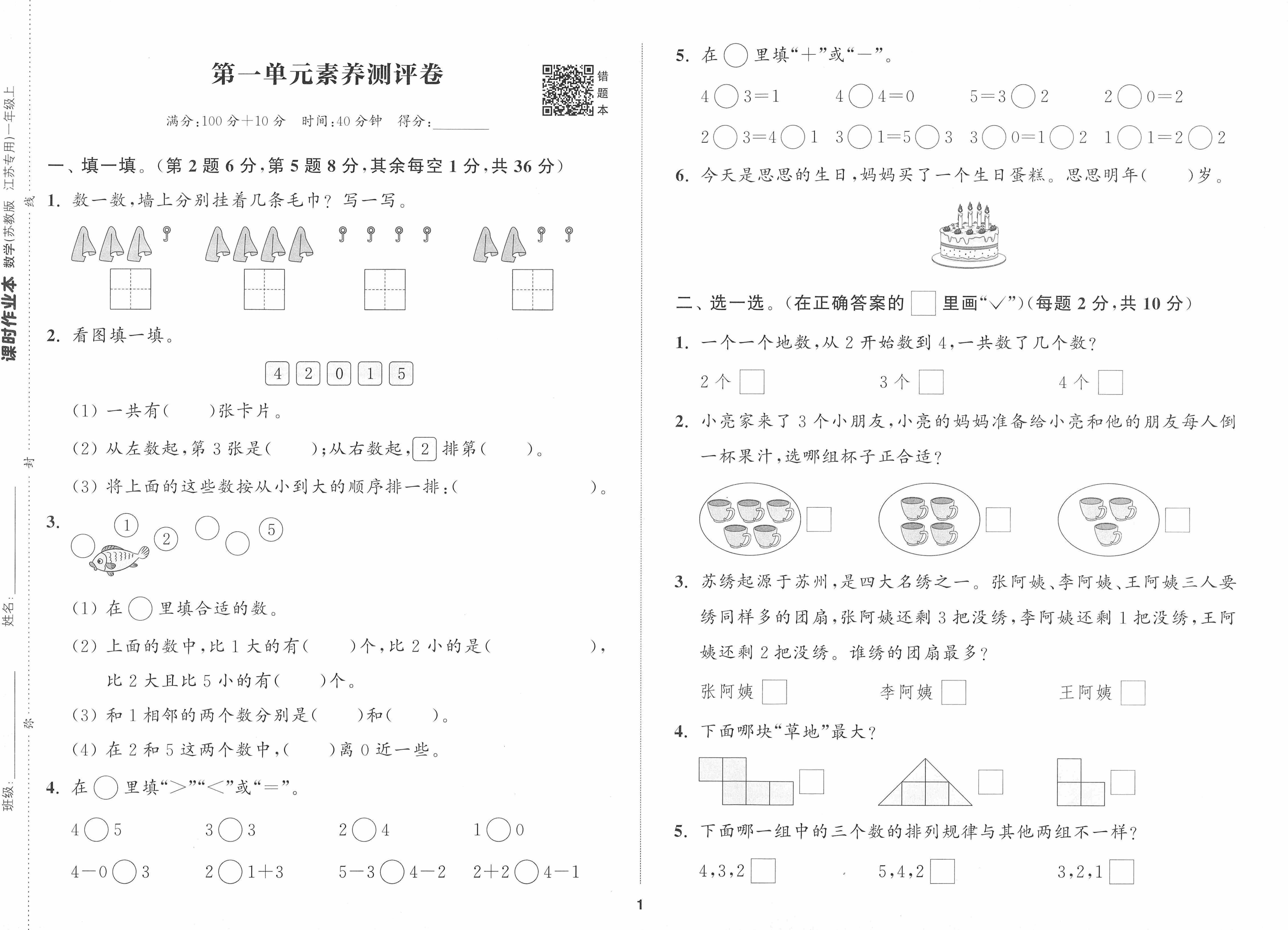 一(上)25秋苏教数学单元卷(SJ版)好卷