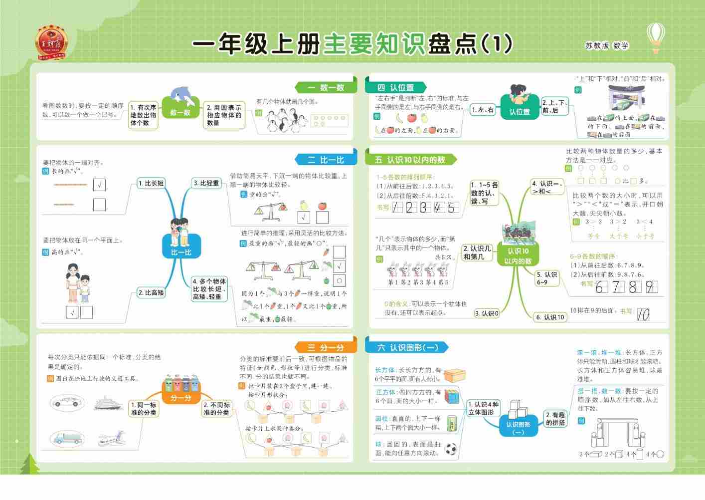 一(上)数学苏教版(1-6上册)单元苏教数学核心考点思维导图一览表