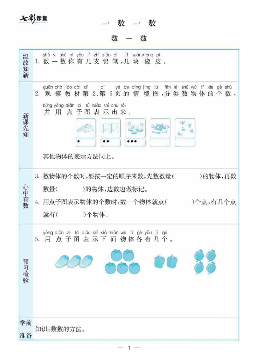 一(上)苏教版数学全册预习卡