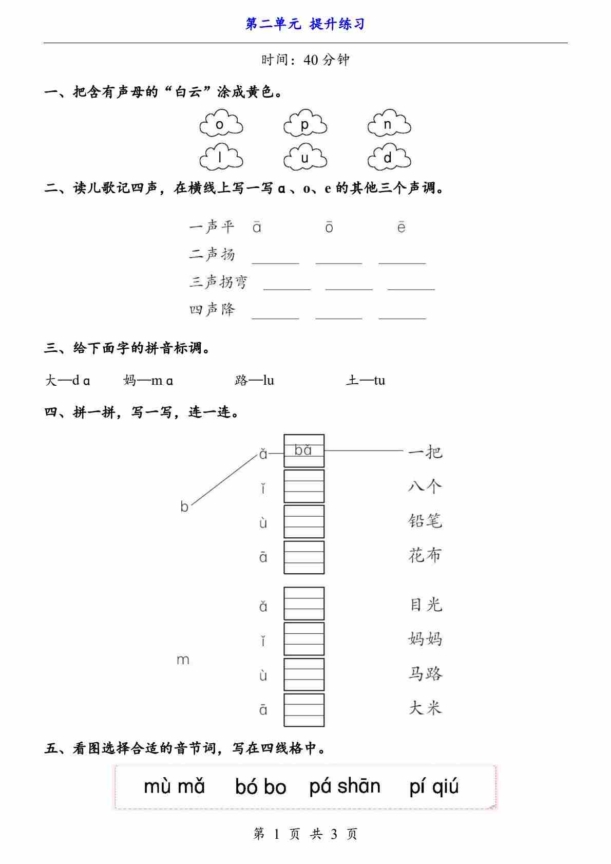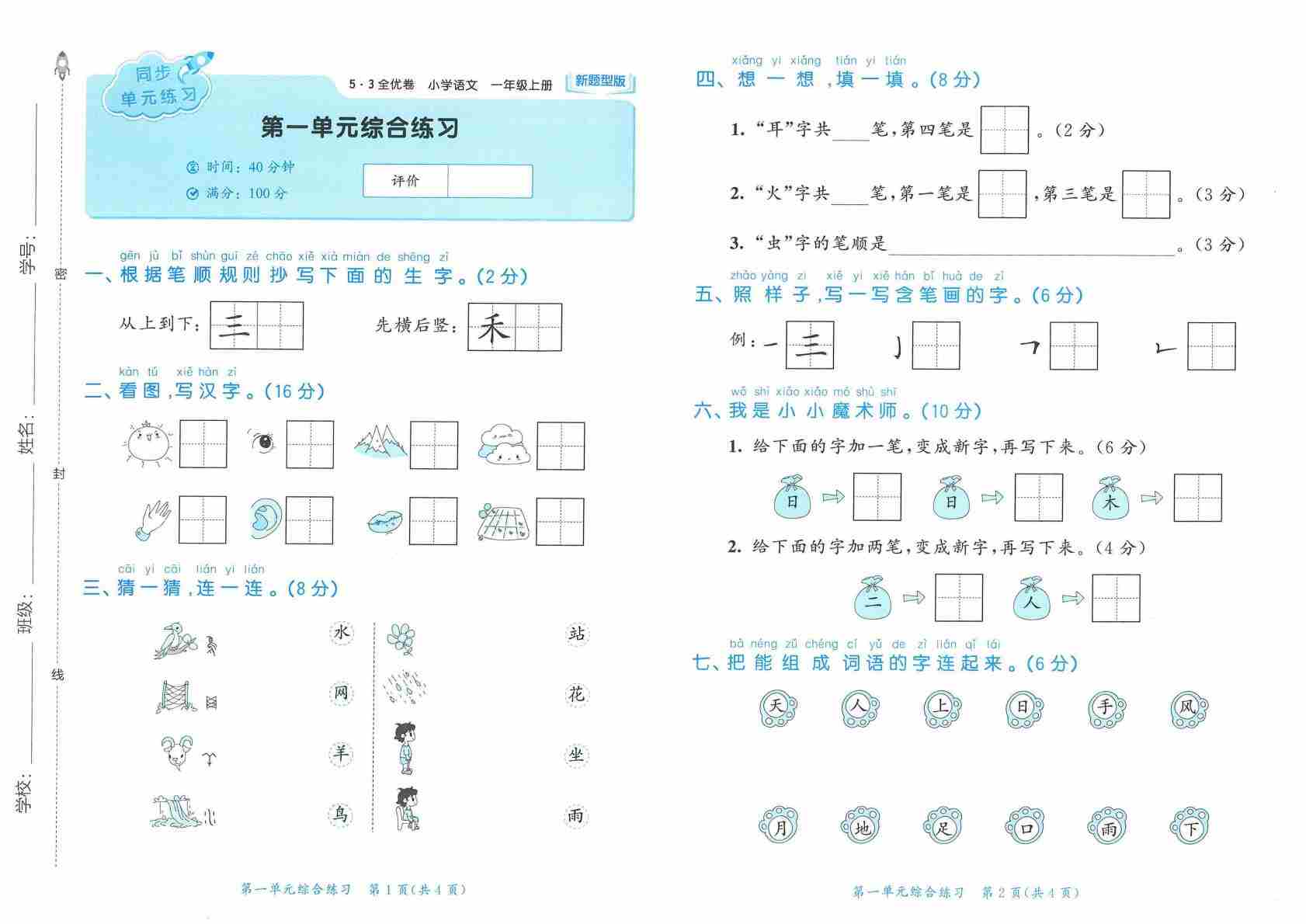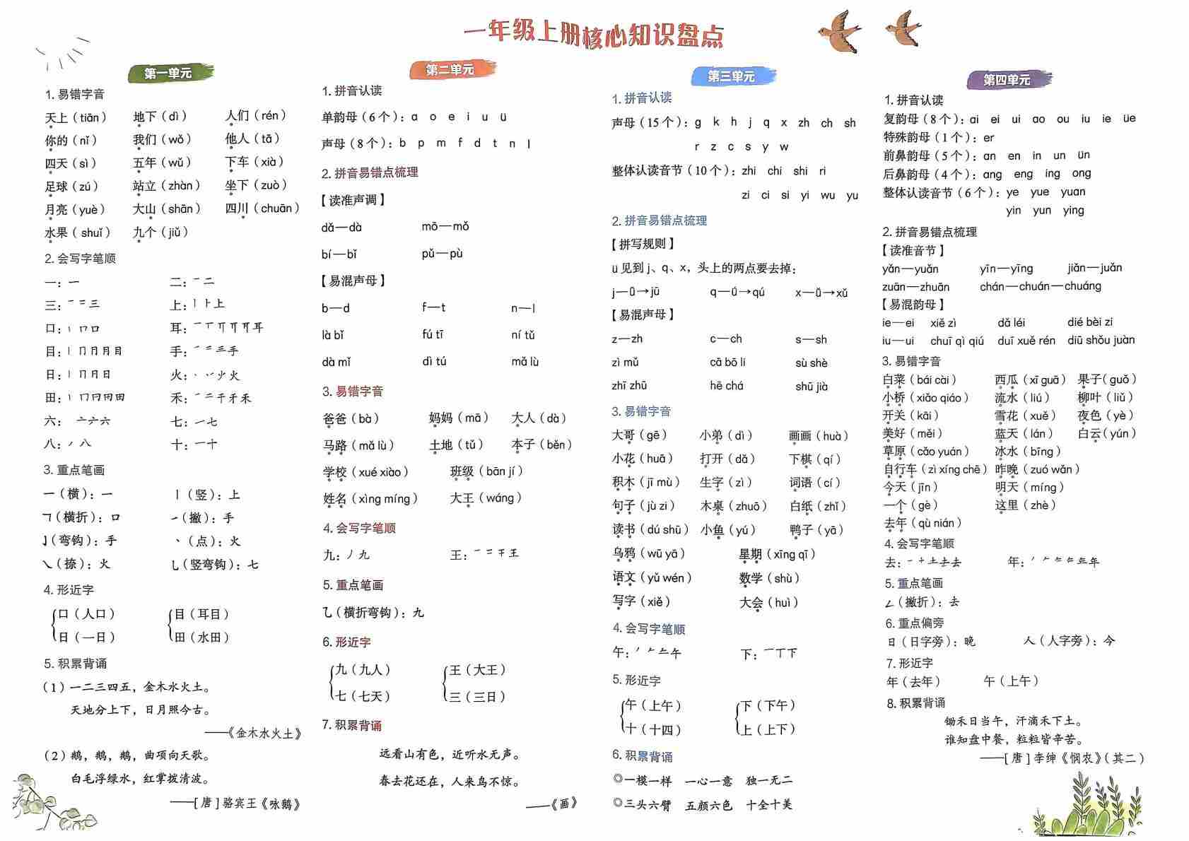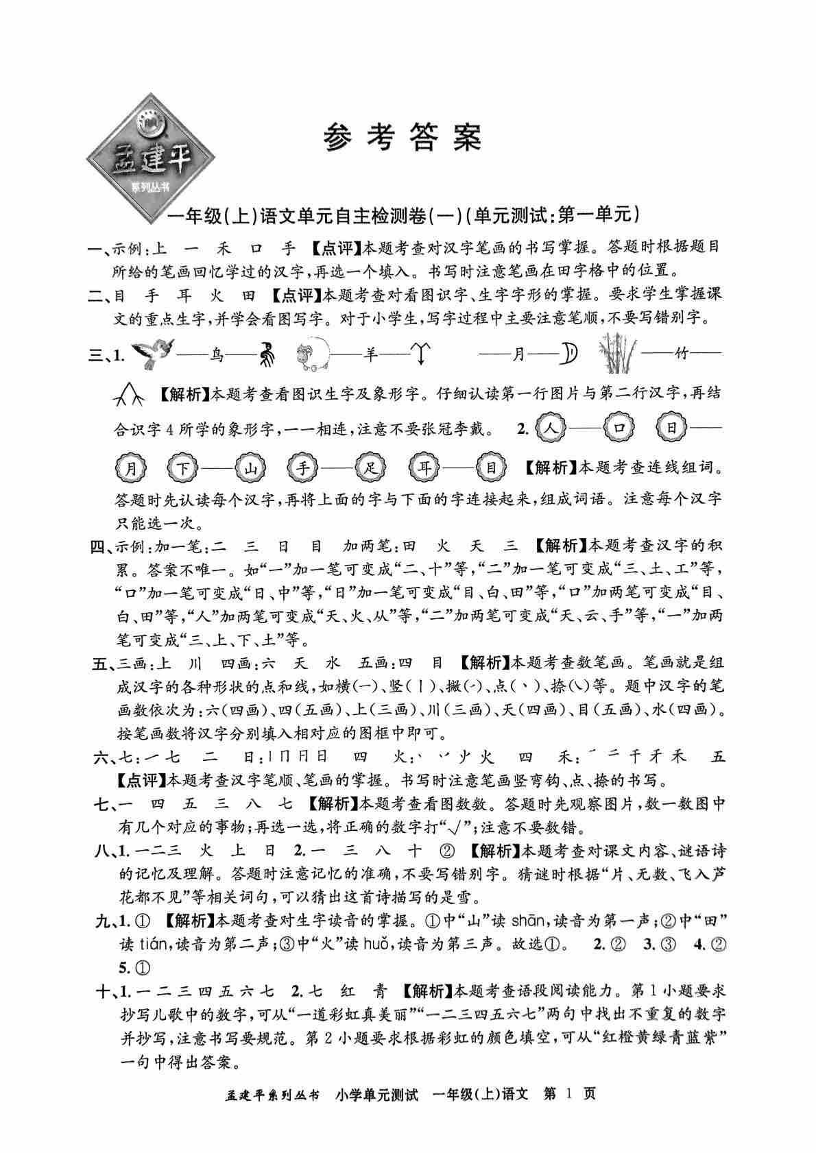 一(上)语文《孟建平小学单元测试》单元知识梳理