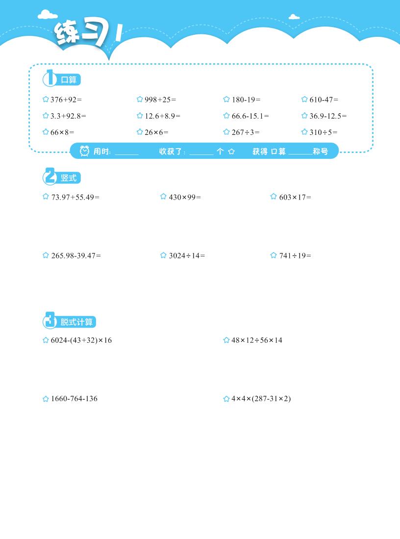 四(上)数学计算综合练习