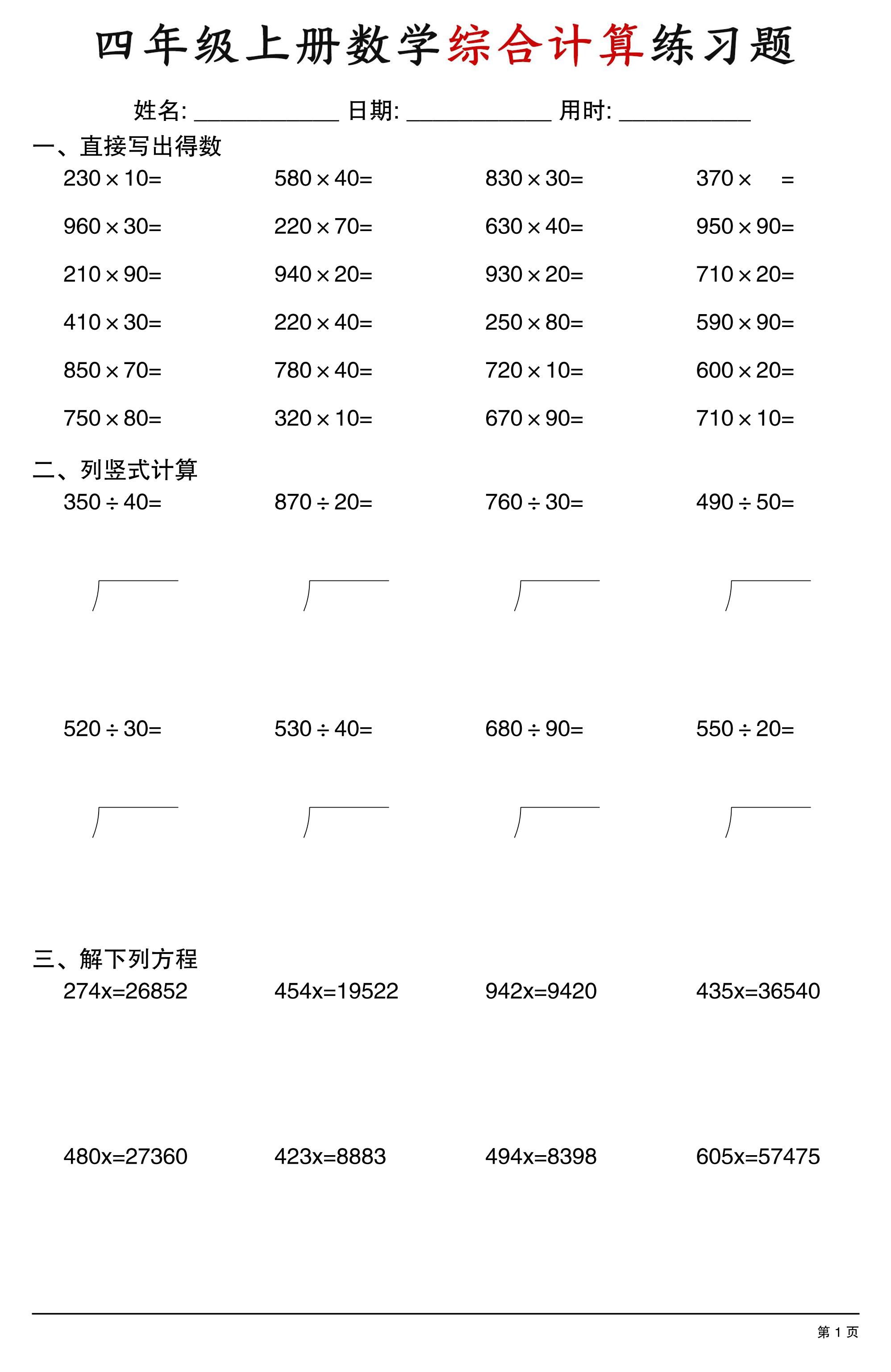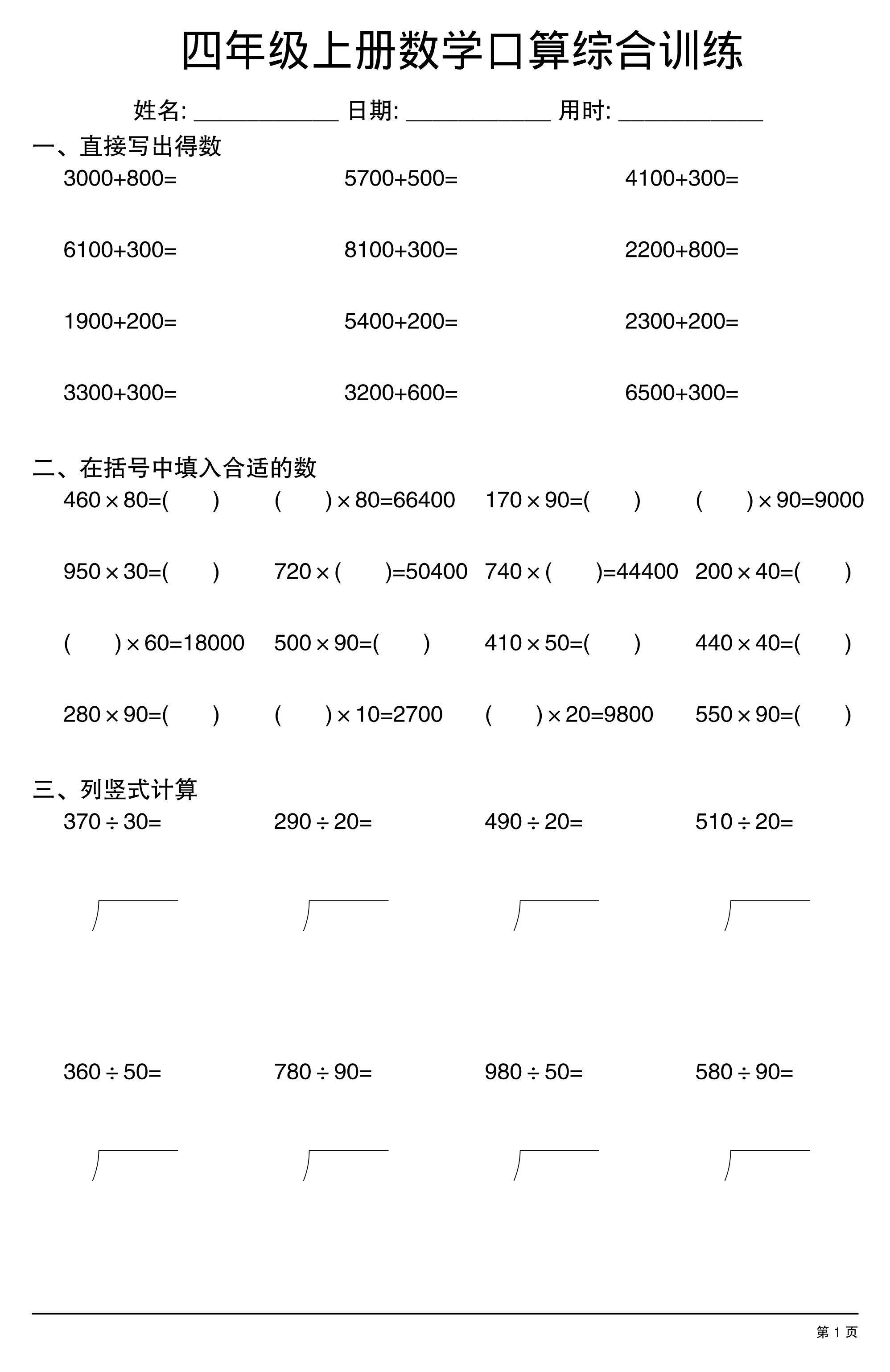 四(上)数学【口算、竖式、脱式计算】
